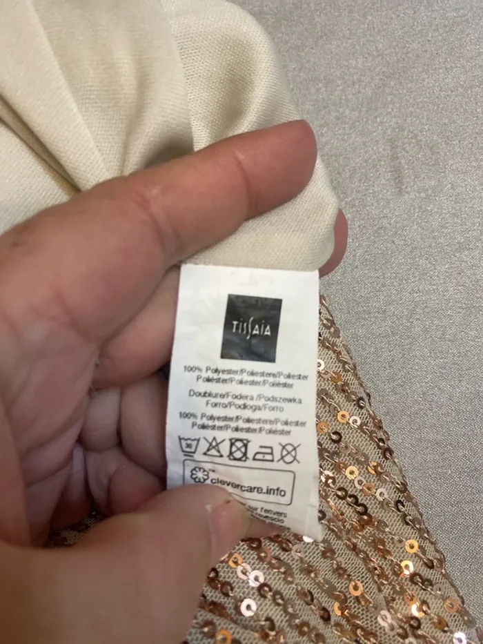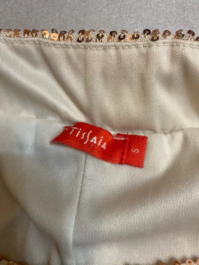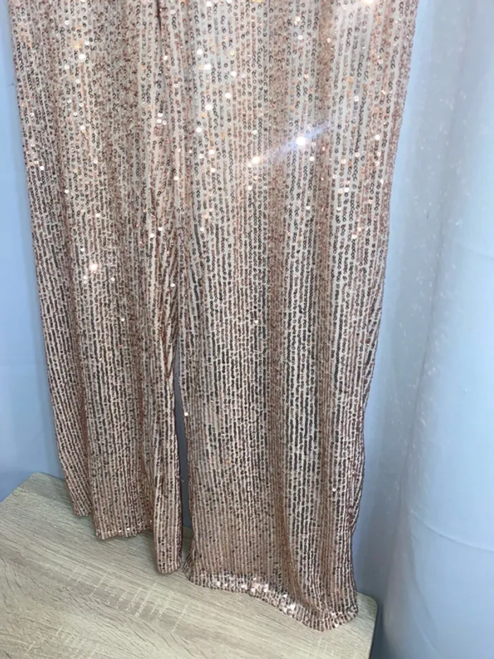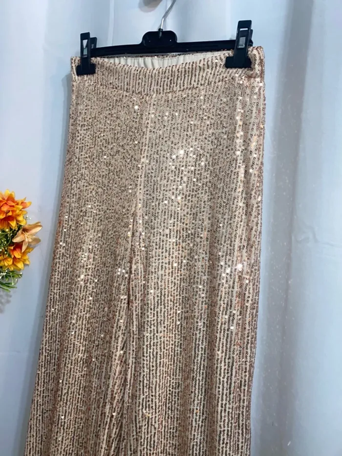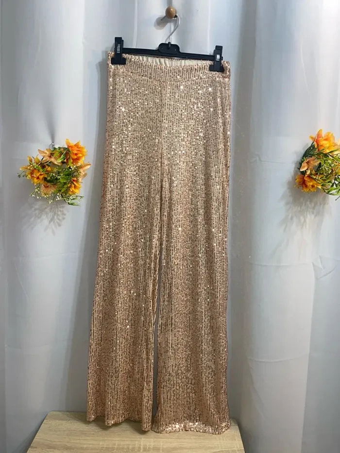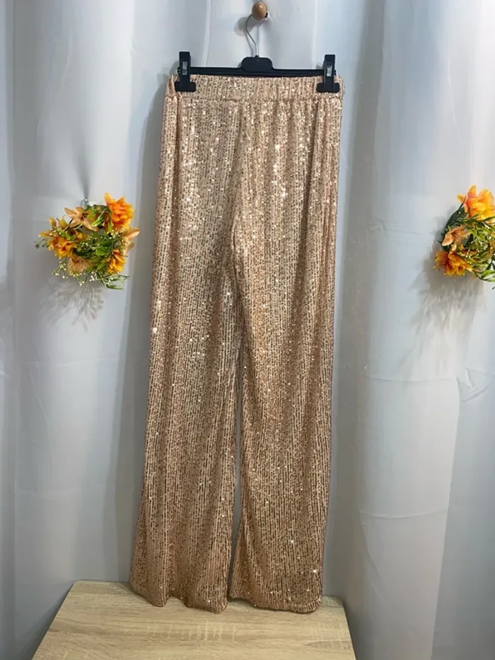 Pantalon fluide beige/doré avec sequins brillants Tissaia taille S = 36 - n57p