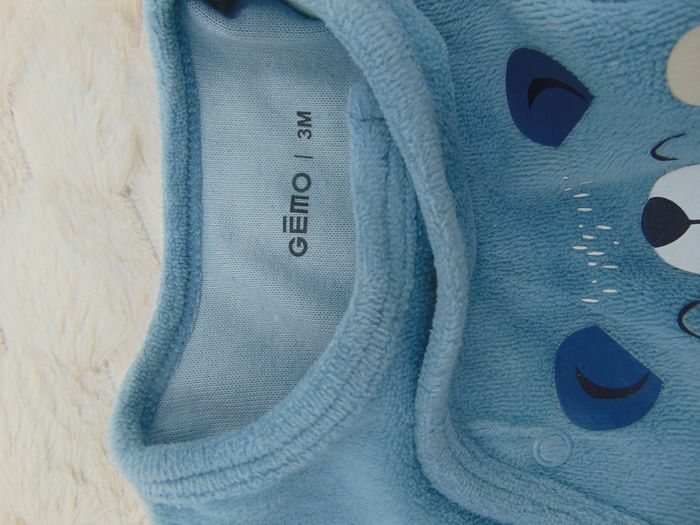 - Matière velours - Fermeture devant avec pressions - Couleur bleu - Dessin ourson - Aucune tâche ni trou