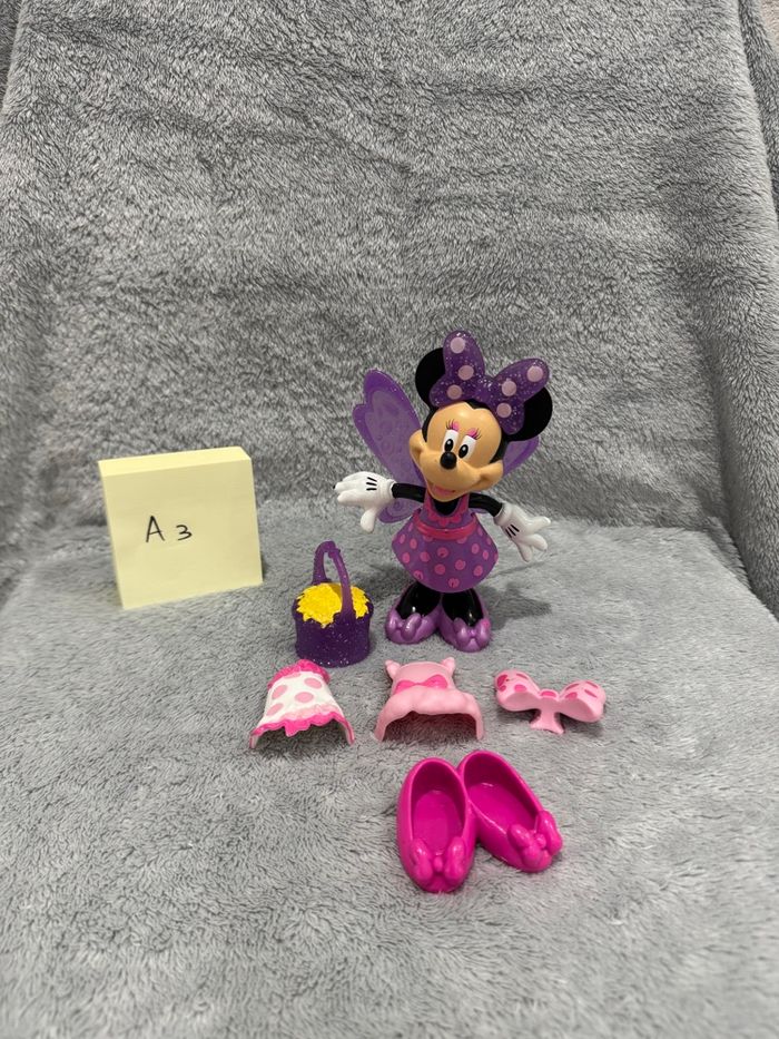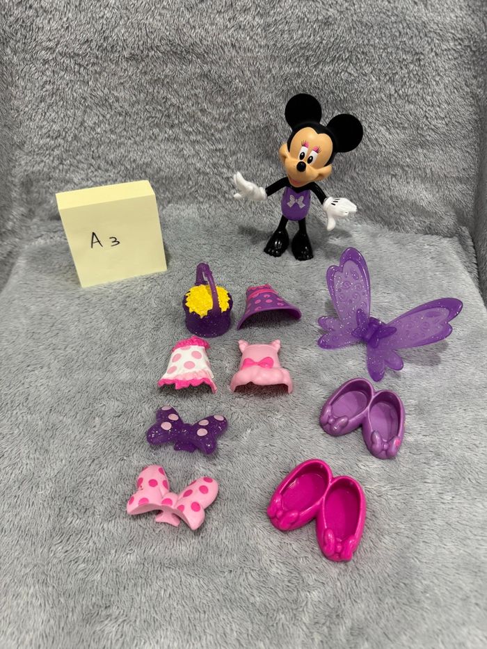 A3 Figurine fashionistas Minnie Disney avec accessoires de change. D’autres fashionistas disponible voir mes autres annonces. Jouet utilisé comporte des traces d’utilisation comme chaque jouet utilisé. Mais est en très bon état.