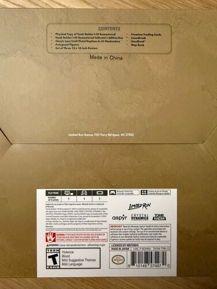 - Tomb Raider I-III Remastered Collector's Edition Box