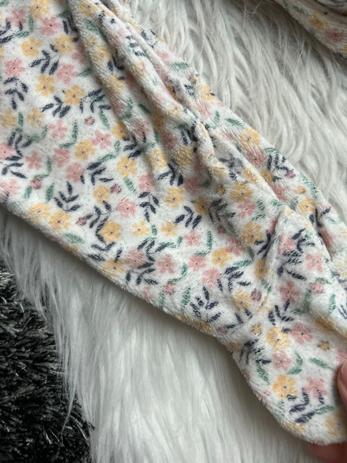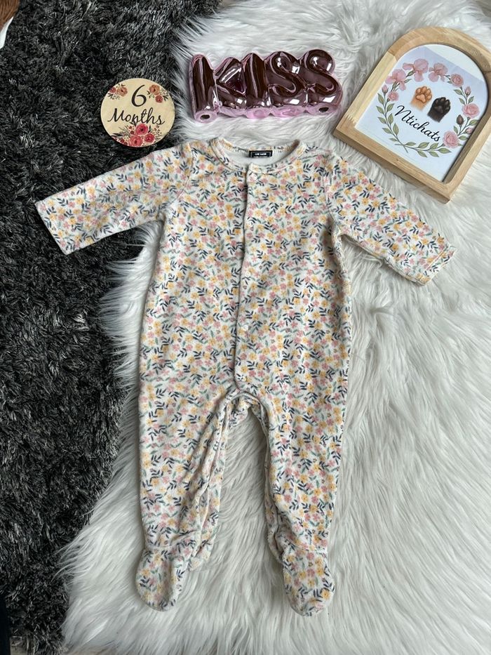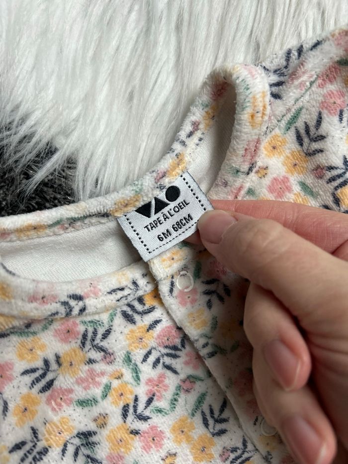 Adorable Pyjama/Dors Bien Bébé Fille 6M (68cm) TAPE À L'OEIL - Fleuri Doux 📝 Description Simplifiée : Article : Pyjama / Dors Bien / Grenouillère pour bébé. Marque : TAPE À L'OEIL (TAO) Taille : 6 mois (6M - 68 cm) État : Excellent état (ou Pratiquement neuf / Très bon état, ajustez selon votre jugement) Couleur : Écru/Blanc Cassé avec motif floral (roses, jaunes, verts) Matière : Velours ou tissu éponge très doux (détaillez la matière en voyant l'article) Détails à noter : • Tissu très chaud et douillet (parfait pour l'hiver ou la mi-saison). • Motif fleuri adorable et tendance. • Fermeture par boutons pression sur le devant (pratique pour l'habillage/changement). • Pieds intégrés pour garder bébé bien au chaud. ✨ Idéal pour des nuits confortables et douces !