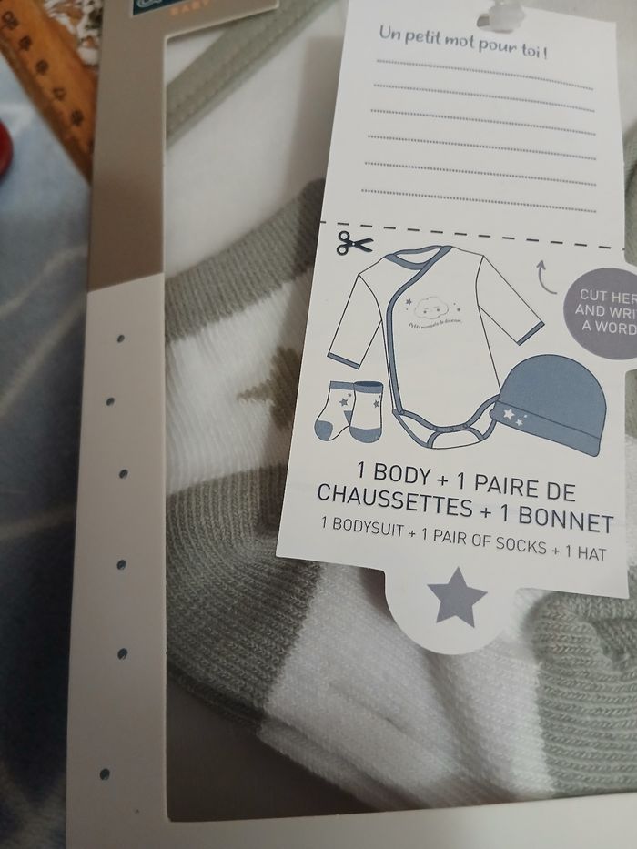 Neuf/ Coffret naissance inclus "Body+ Bonnet +Chaussettes"