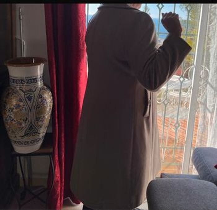 Magnifique manteau long couleur taupe, coupe classique et raffinée - photo numéro 3