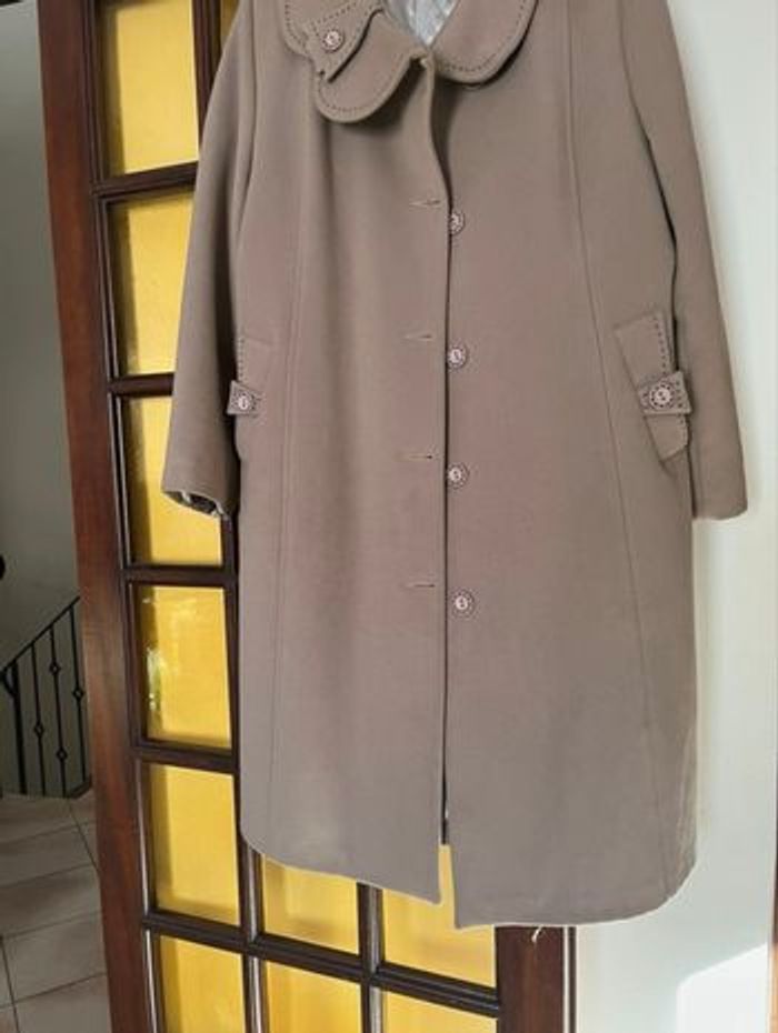 Magnifique manteau long couleur taupe, coupe classique et raffinée - photo numéro 1