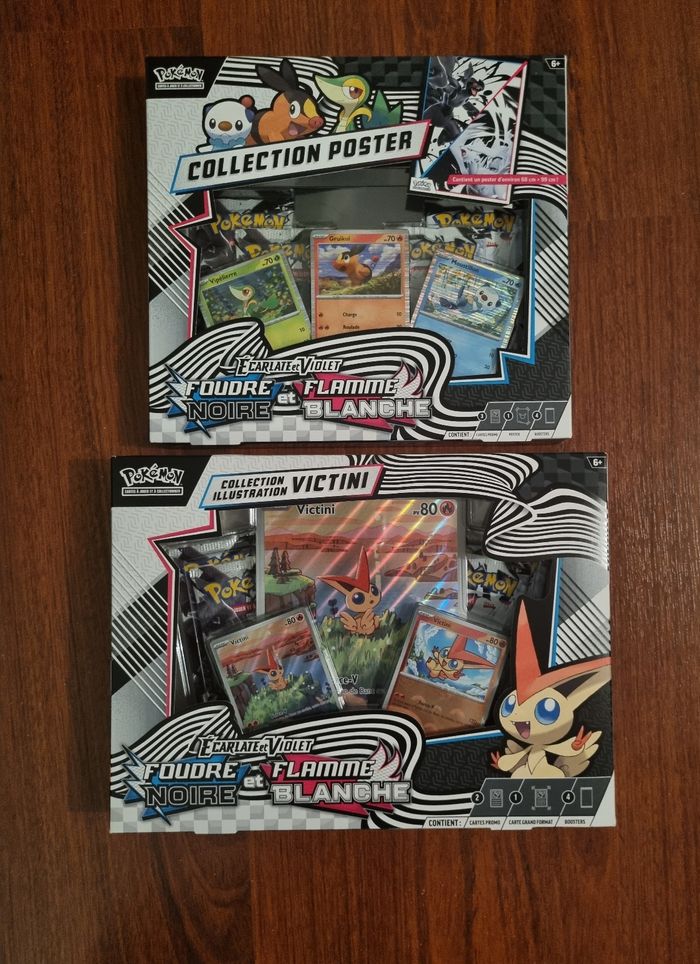 Coffret pokemon EV10.5 Flamme Blanche, foudre noire. 1 coffret victini 1 coffret poster. Neuf. Prix ferme. Voir photos. Pour plus d'infos veuillez me contacter. Envoi rapide sous papiers bulles via mondial relay. Photos et vidéos de préparation et envoi colis.