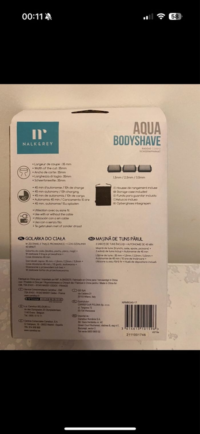 Tondeuse corporel neuf Nalk & Rey aqua bodyshave - photo numéro 1