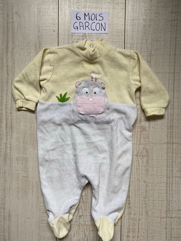 Grenouillère à manches longues Motif : hippopotame Matière : velours, hiver Âge : 6 mois Utilisation : pressions dans le dos Marque : Sans marque #tiffanie4439_6mois