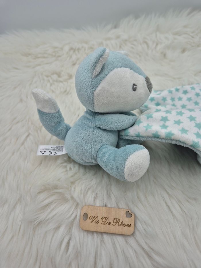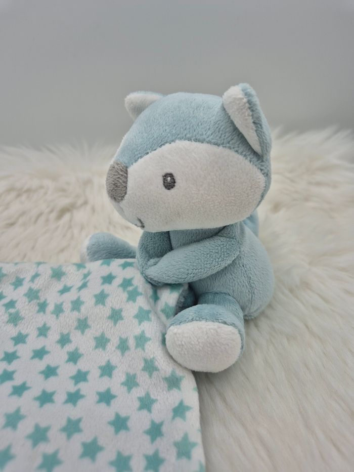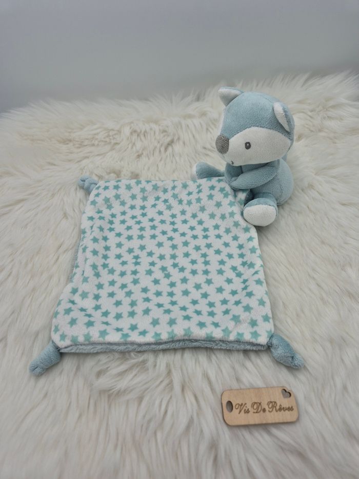 Doudou renard mouchoir bleu vert Nicotoy - photo numéro 1