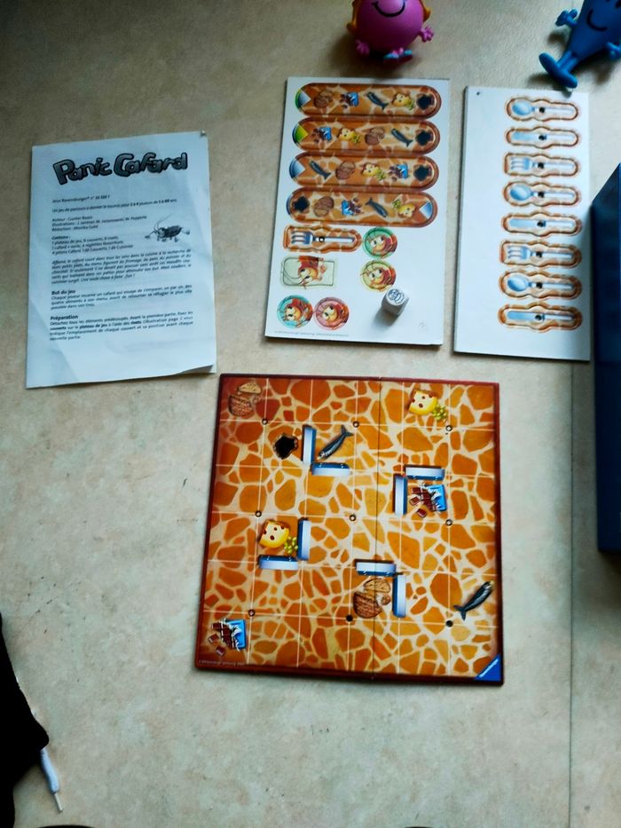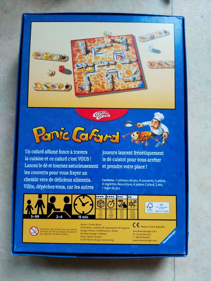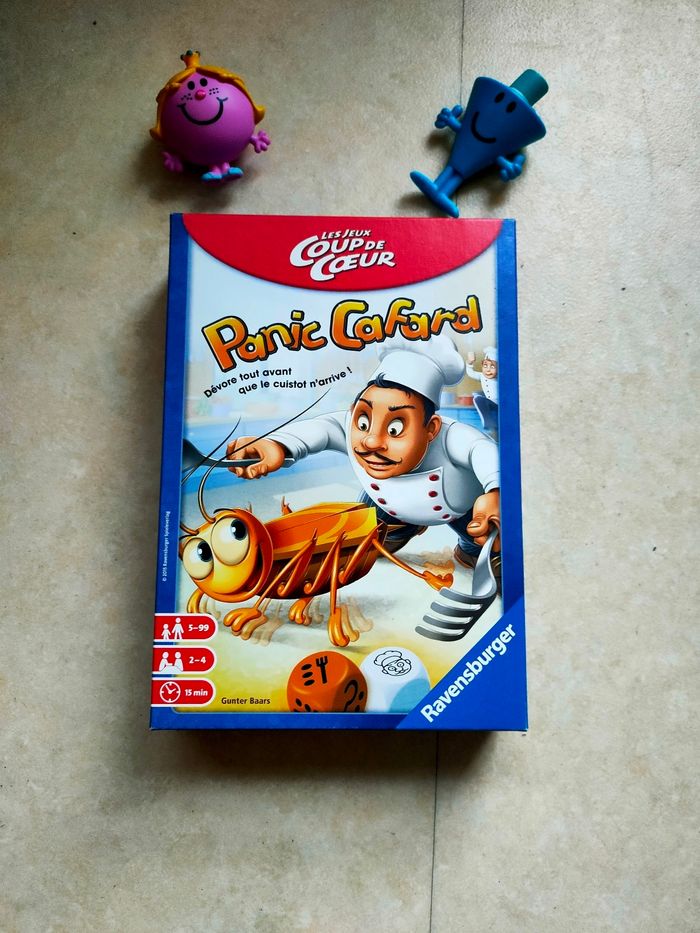 Jeu de chance, rapidité, action et stratégie : incarnez un cafard affamé qui traverse la cuisine pour attraper un maximum d’aliments ! Tournez les couverts, lancez le dé et frayez-vous un chemin… pendant que les autres joueurs tentent de vous arrêter ! 📦 Contenu du jeu : 1 plateau de jeu 9 couverts 1 cafard 4 réglettes Nourriture 4 jetons Cafard 2 dés (⚠️ manque 1 dé couverts) Règles du jeu ℹ️ Informations : Dès 5 ans 2 à 4 joueurs Durée d’une partie : 15 min Dimensions de la boîte : 19 × 5 × 27,5 cm ⚠️ Manque également 8 rivets Jeu idéal pour voyager, rapide et super fun ! #didinedorajouets #ravensburger
