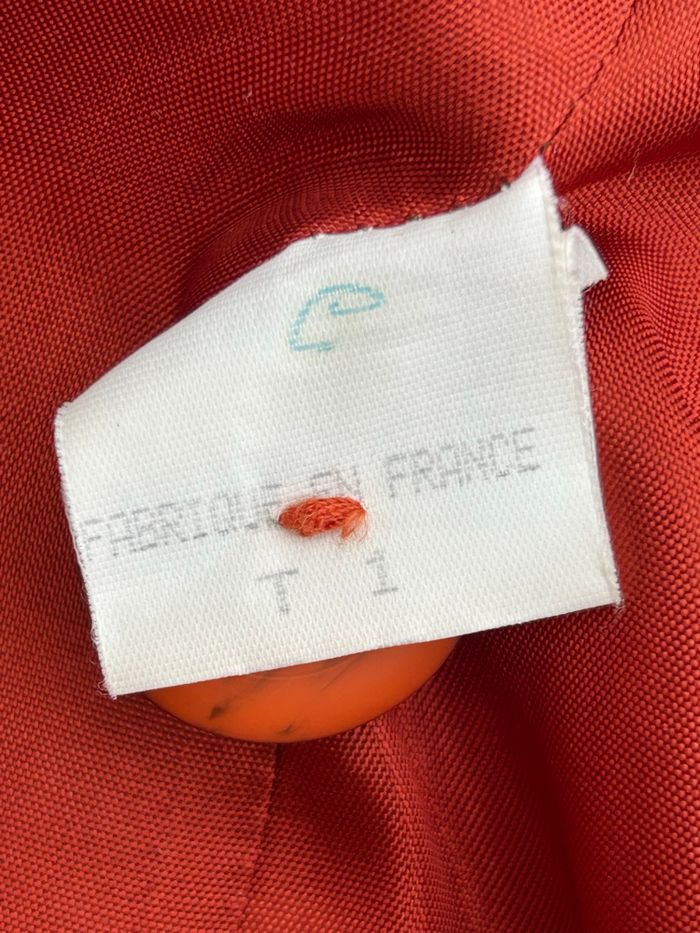 Veste cintrée pour femme de la marque Camaïeu, taille 1 (équivalent 36/38), fabriquée en France. Composition 80% laine et 20% polyamide, couleur orange lumineuse, doublure intérieure ton sur ton. Longueur 60 cm, largeur à plat 40 cm, col tailleur, fermeture par 3 boutons et deux poches à rabat devant. Style chic et vintage, idéale pour la mi-saison ou pour apporter une touche de couleur à une tenue. 🛍️ N’hésitez pas à faire un lot j’ai beaucoup d’articles en ventes. 📦 Envoi ou remise main propre à Limoges.
