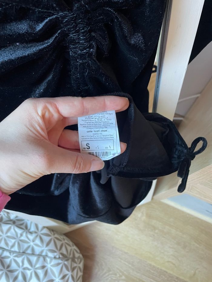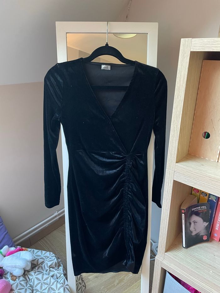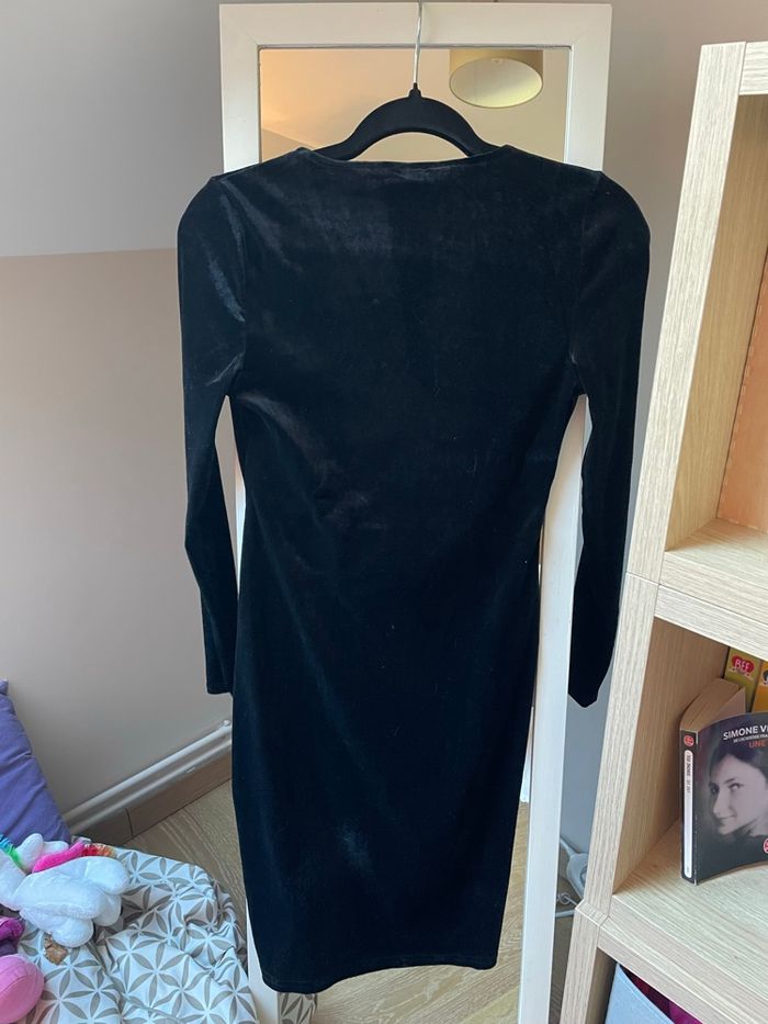 Petite robe noir en velours un peu brillante, parfaite pour les fêtes ;) Cintré au niveau de la taille J’ai du la porté qu’une seule fois