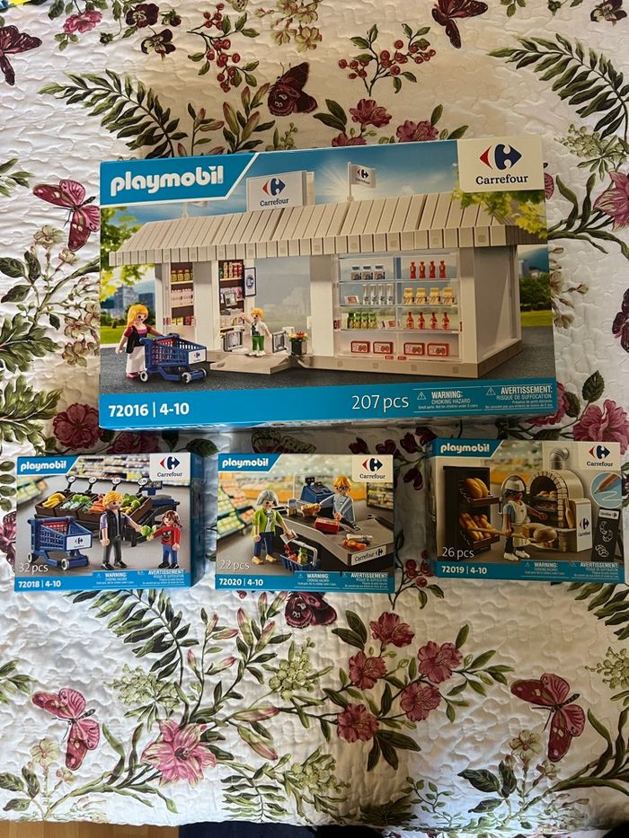 Je vends un lot complet de 4 sets Playmobil Carrefour, très difficile à trouver car il s’agit d’une édition spéciale.