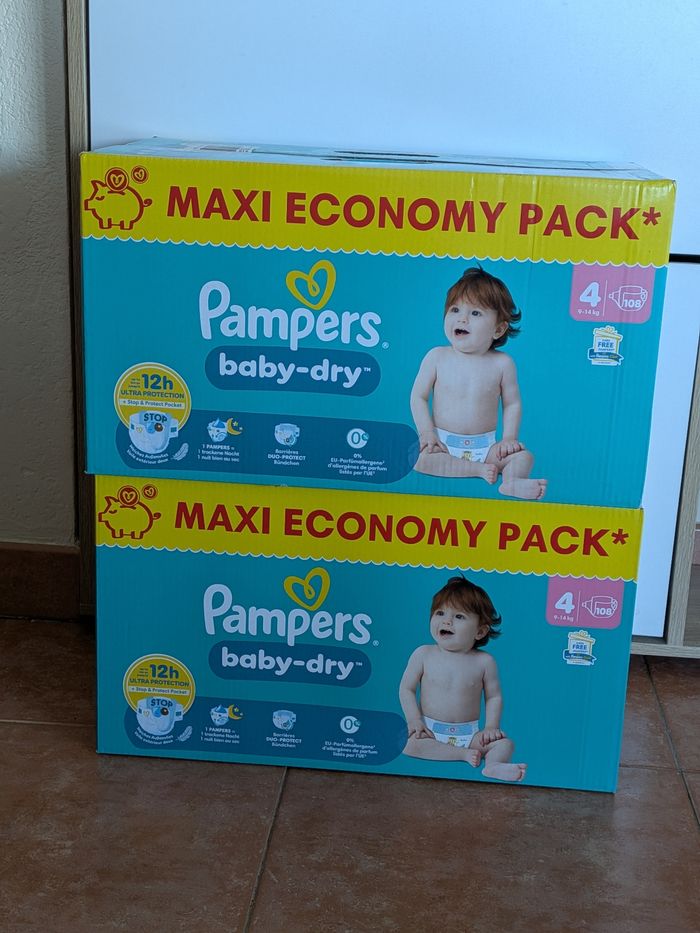Lot de 2 paquets de 108 couches = 216 couches pampers baby dry taille 4 Neufs N'hésitez pas à me contacter pour toute question