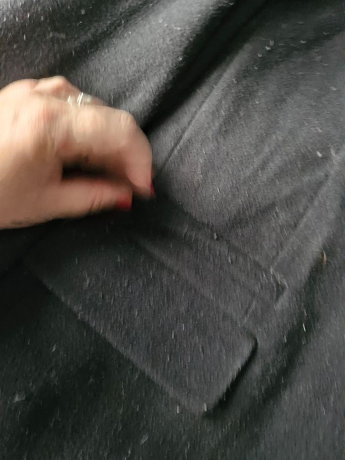 Le tissu est un tissu que j'appelle "ramasse-poil" donc malgré lavage et brosse, il y a des fibres qui s'y agrippent.