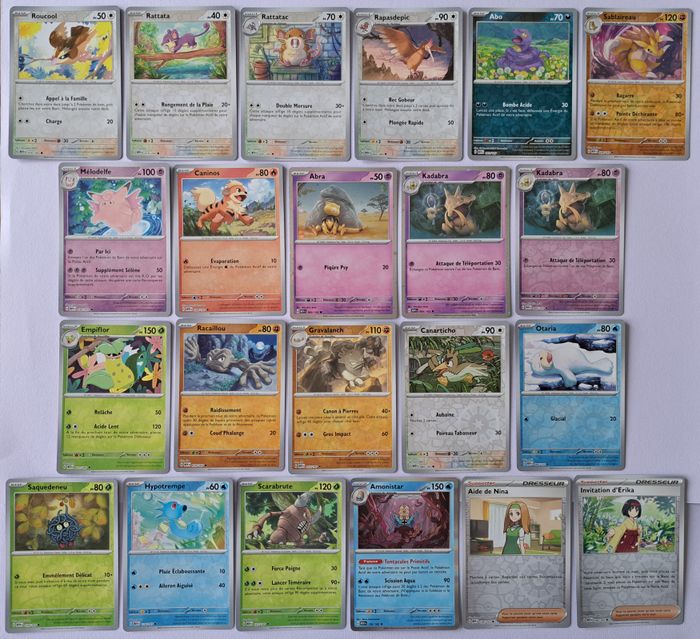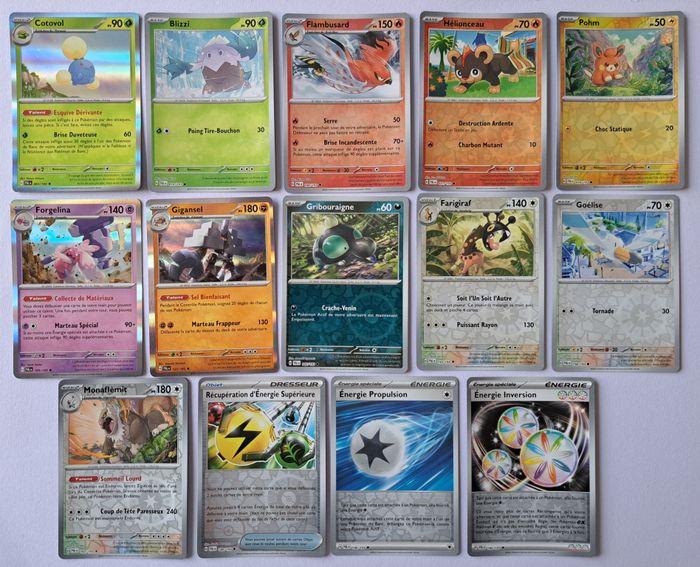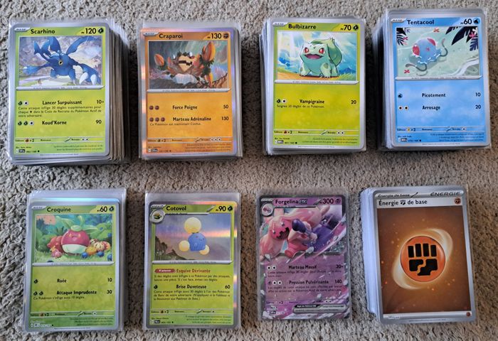 🃏 Lot de 593 cartes Pokémon (TCG - JCC) françaises, dont 143 brillantes holo / reverse / autre, de 2023 des séries Écarlate et Violet, Promos, Évolutions à Paldea, Flammes Obsidiennes, Promo McDonald's, 151 ; commune, peu commune, rare et autre 🛠️ État : bon à très bon, toutes les brillantes sont protégées sous sleeve, quelques doubles (voir description et photos pour plus de détails ; liste complète en photos) 📦Envoi rapide, suivi et soigné 🤝 Vente directe possible sur Berck (62600) ➡️ Intéressé(e) par plusieurs articles ? Regroupez vos achats pour économiser sur les frais de port ! 📩 Besoin d'infos supplémentaires ? Je suis dispo, n'hésitez pas ! Broc'Ant – Jouets • Jeux Vidéo • Brocante • Objets de Collection #brocant #brocantcartepokemon #vintage #collection #retro #ancien #carte #card #tradingcardgame #tcg #pokemon #jcc