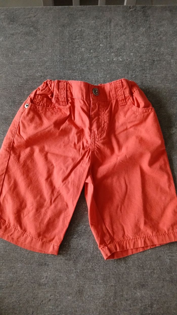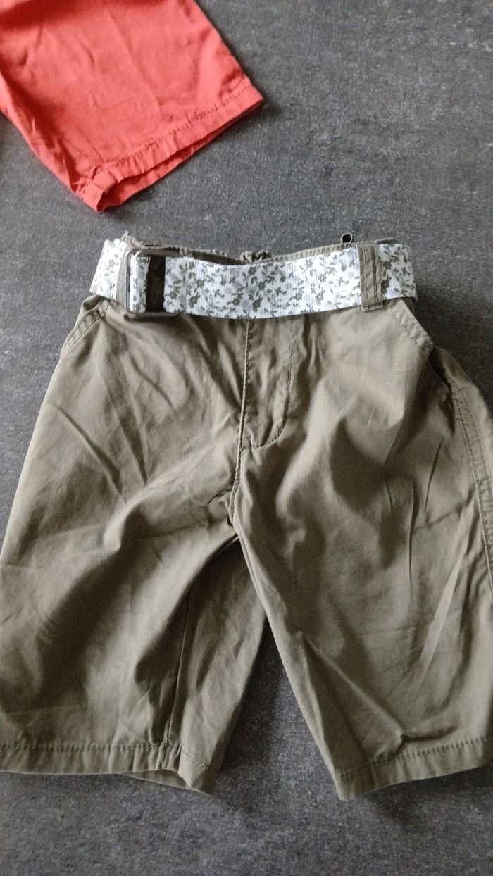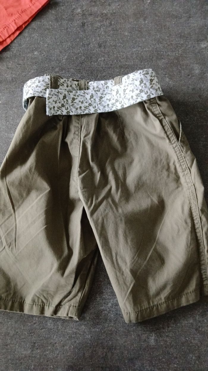 Lot de deux shorts en tres bon etat, taille 4 ans. De marque plus. Un couleur rouge et un couleur kaki avec ceinture blanche motif a fleurs.