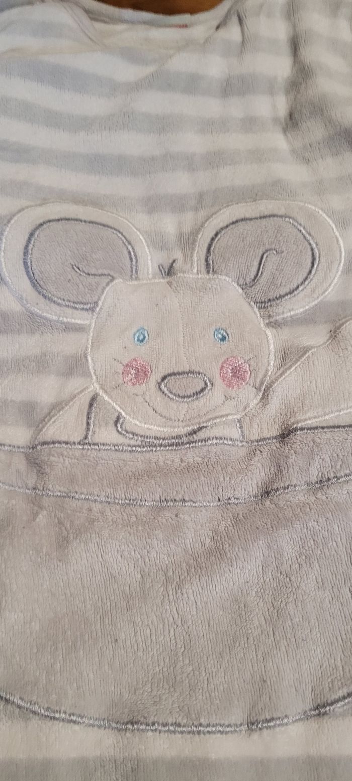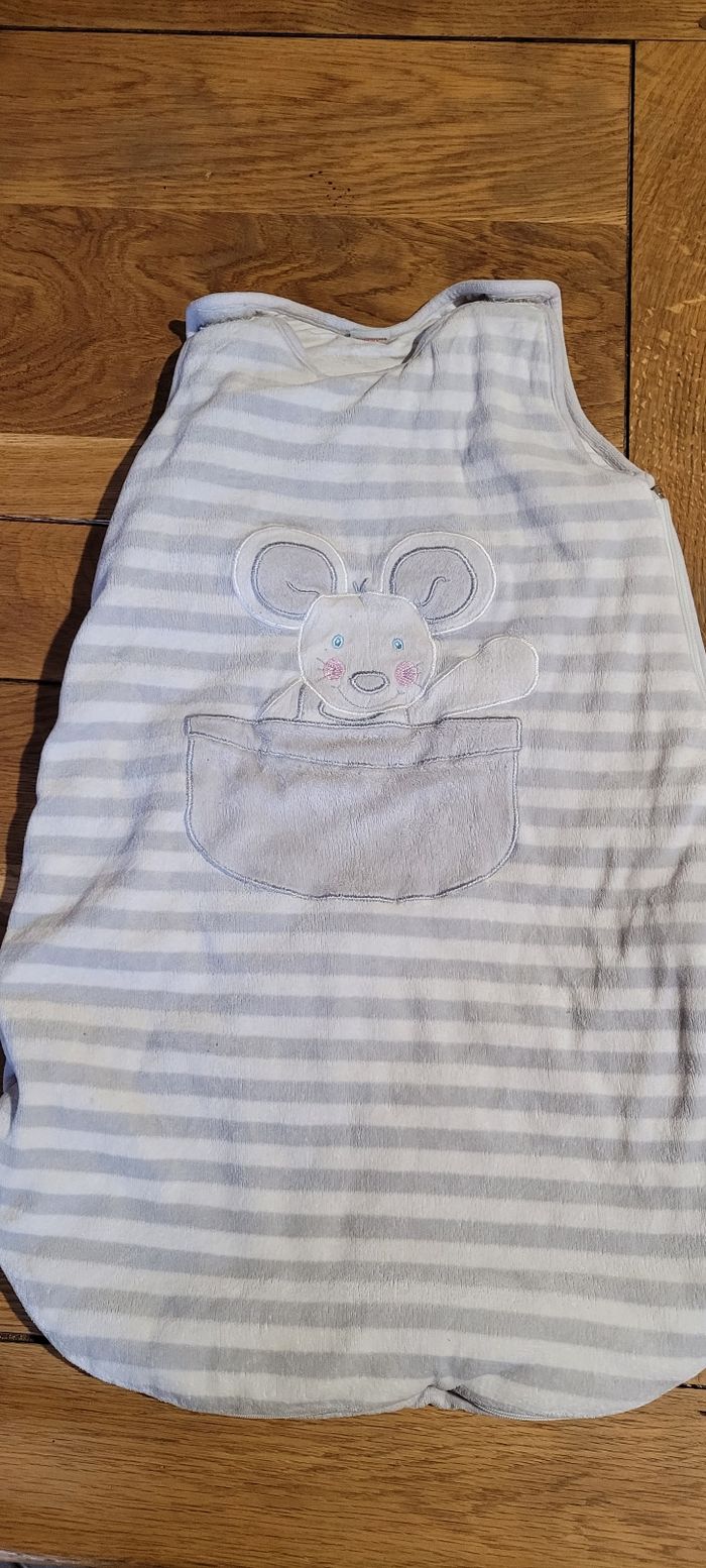 Gigoteuse mixte Blanche et grise 0-6 mois Bellodoux Bon état 3 tâches jaunes dans le bas de la gigoteuse voir photo
