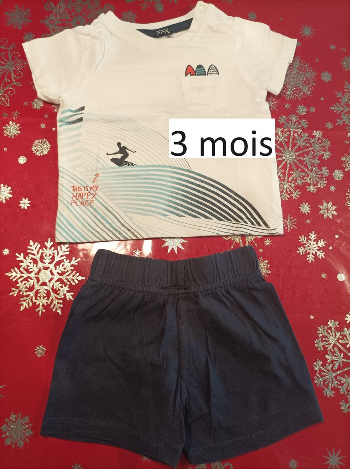 Je vends cet ensemble short et t-shirt manches courtes de la marque Grain de blé, taille 3 mois.