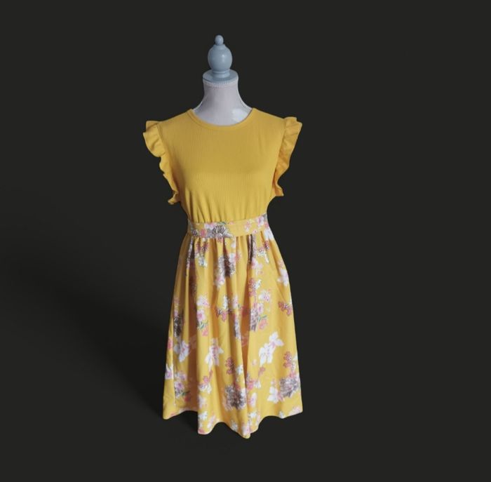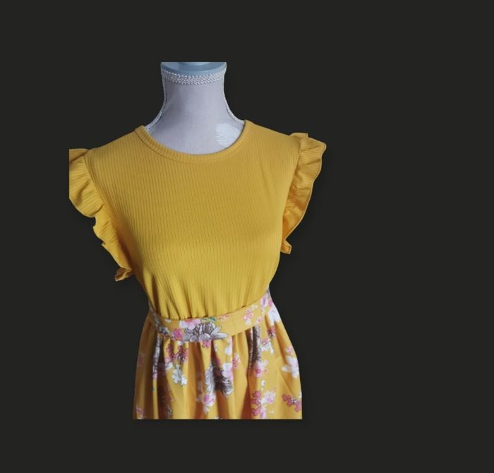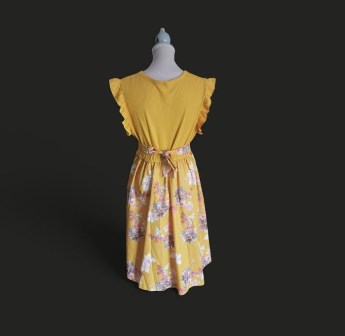 Robe moutarde fleurie avec ceinture neuve taille 13/14 ans - photo numéro 1