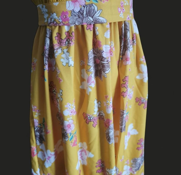 Robe moutarde fleurie avec ceinture neuve taille 13/14 ans - photo numéro 3