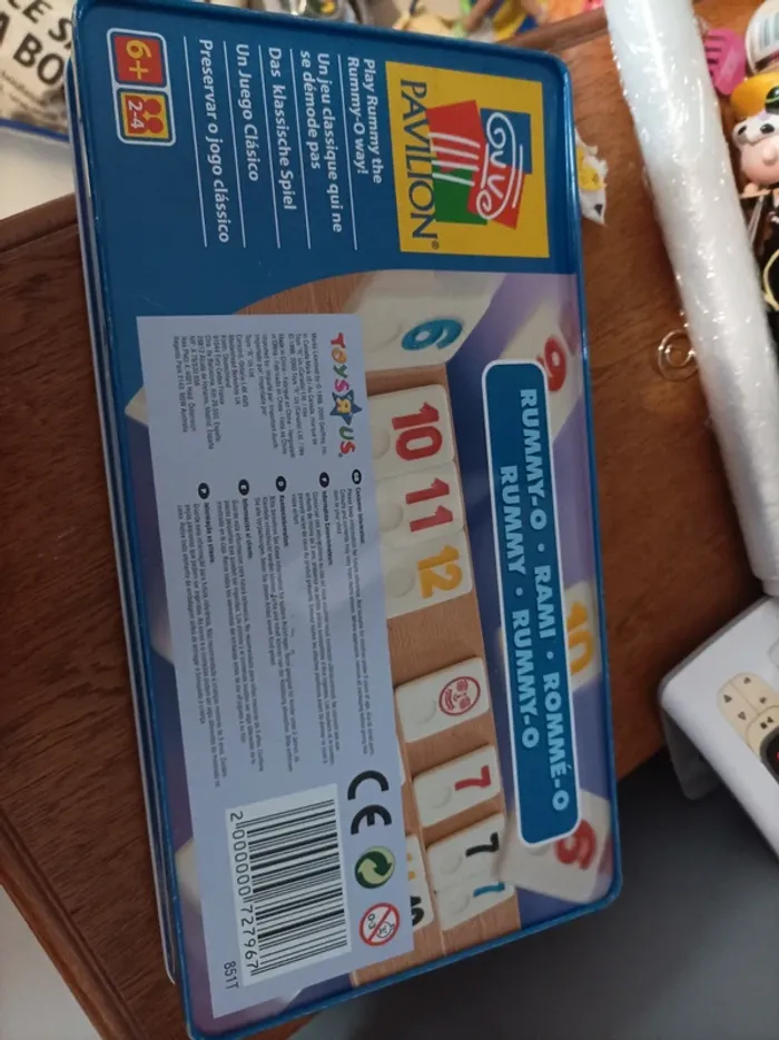 Rummikub des chiffres boîte en métal contenant les 106 pièces du jeu, les 4 chevalets ainsi que la règle du jeu article en très bon état joué une seule fois À partir de 6 ans