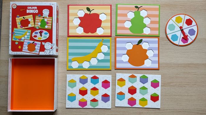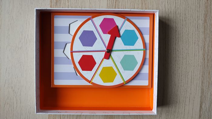 Le 1er joueur fait tourner la flèche, puis prend parmi les pièces celle qui correspond à la couleur indiquée et la place sur sa planche (Si la couleur indiquée ne figure pas su sa planche, il rejoue. S'il a déjà posé cette couleur, il passe son tour et c'est au joueur suivant de jouer.). Le joueur suivant tourne ensuite la flèche.