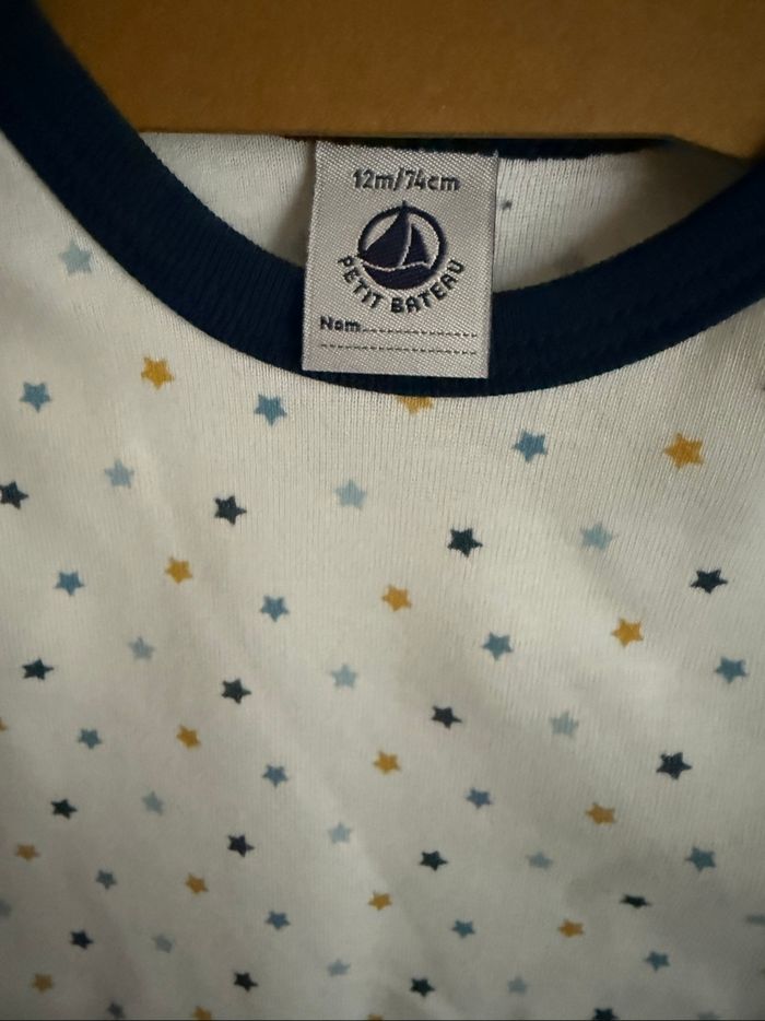 Lot de 3 bodies Petit bateau bleu et blanc 12 mois