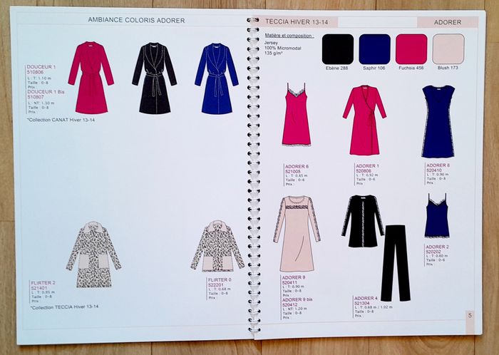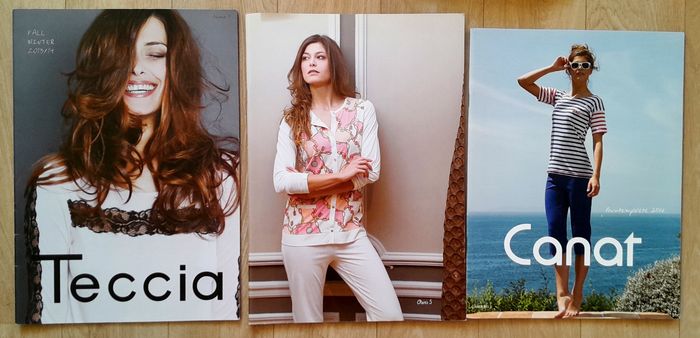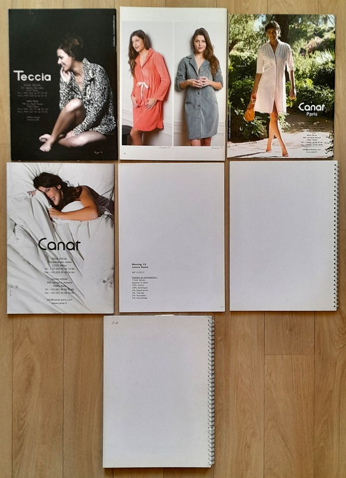 canat catalogue + lookbook annotation discrètes mais pas sur les photos et pas partout + fiches produit pas de vente à l'unité - Canat printemps été 2013 30x21cm 35 pages annotations manuscrites 4 ème de couverture - Canat printemps été 2014 39 pages 28x21cm - Teccia winter 2013/2014 19 pages 29x21cm - 4 fiches 30x21cm - Osiris 5 - 38 pages, 29x21cm - Teccia hiver 2013/2014 30 pages - Canat cahier de collection hiver 2013/2014 74 pages 30x22cm
