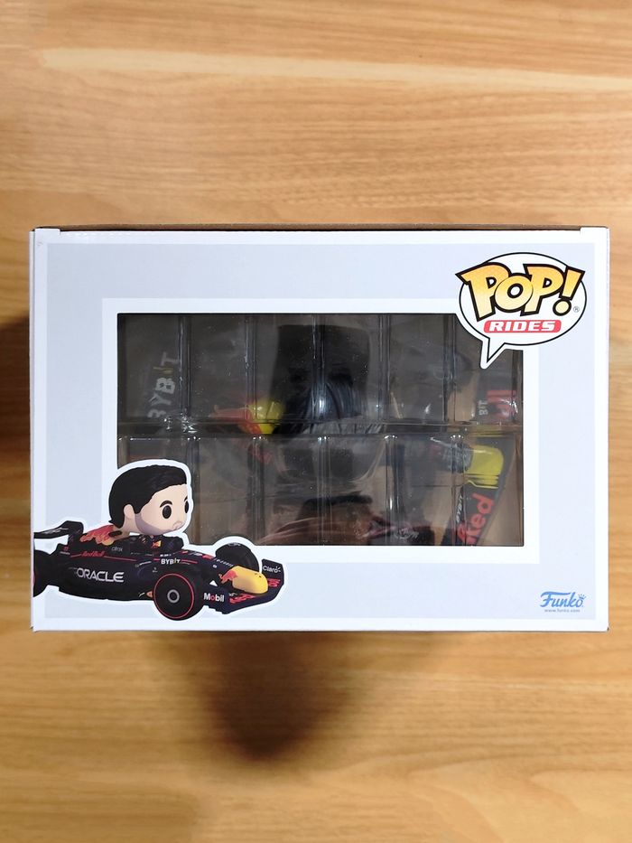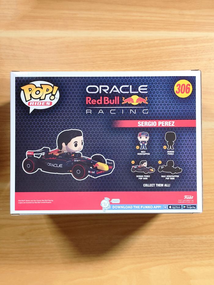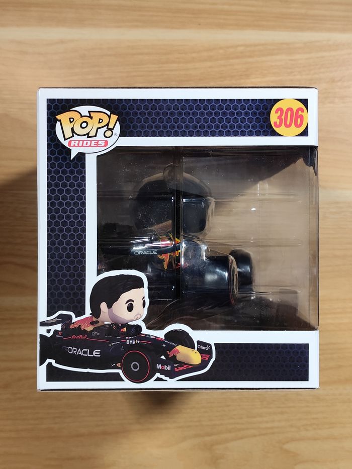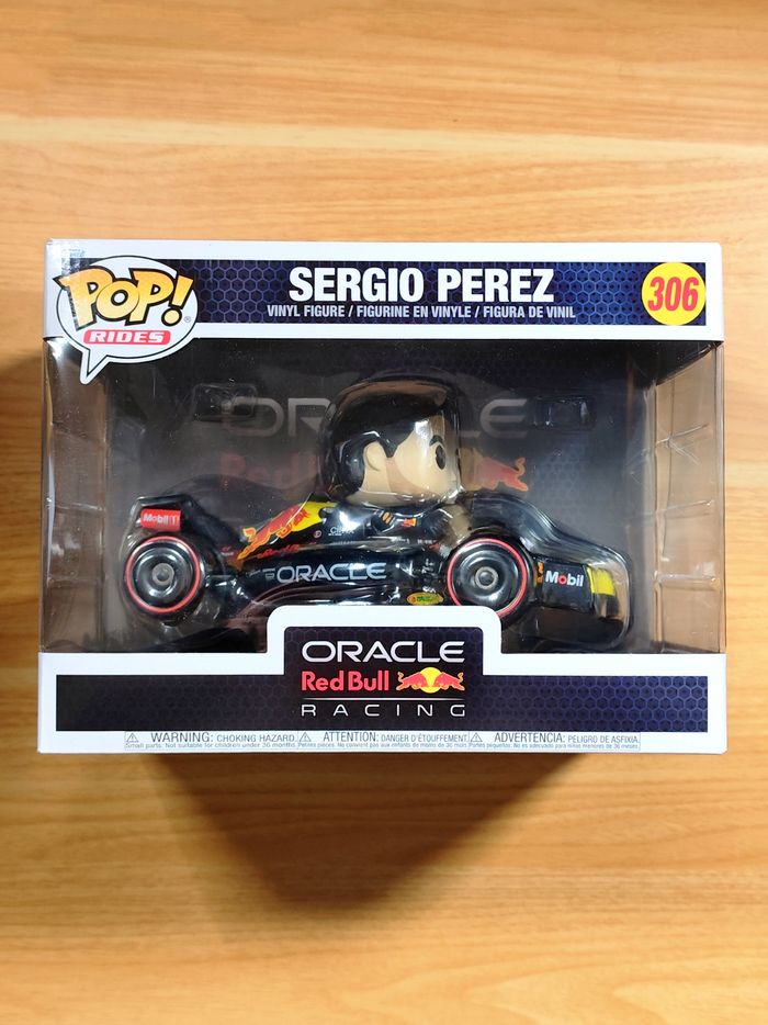 Je propose à la vente cette figurine Funko Pop! Rides NEUVE et dans sa boîte d'origine représentant le pilote de Formule 1, Sergio Pérez (surnommé Checo), au volant de sa monoplace Oracle Red Bull Racing.