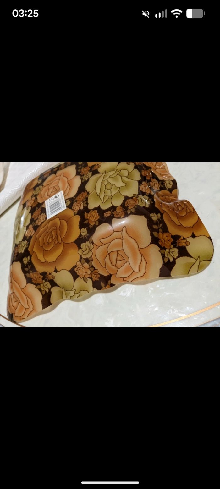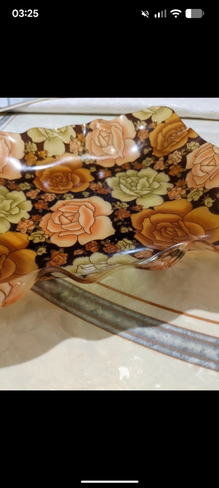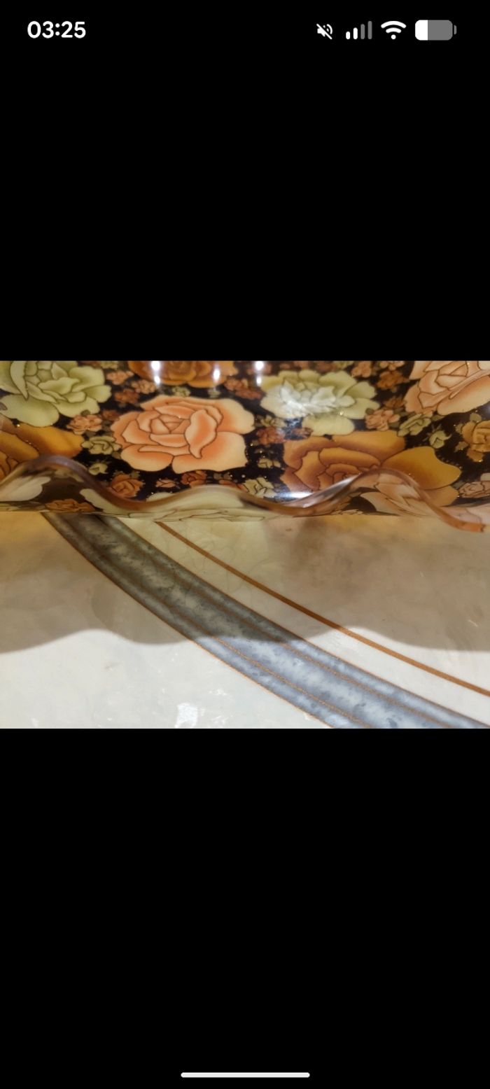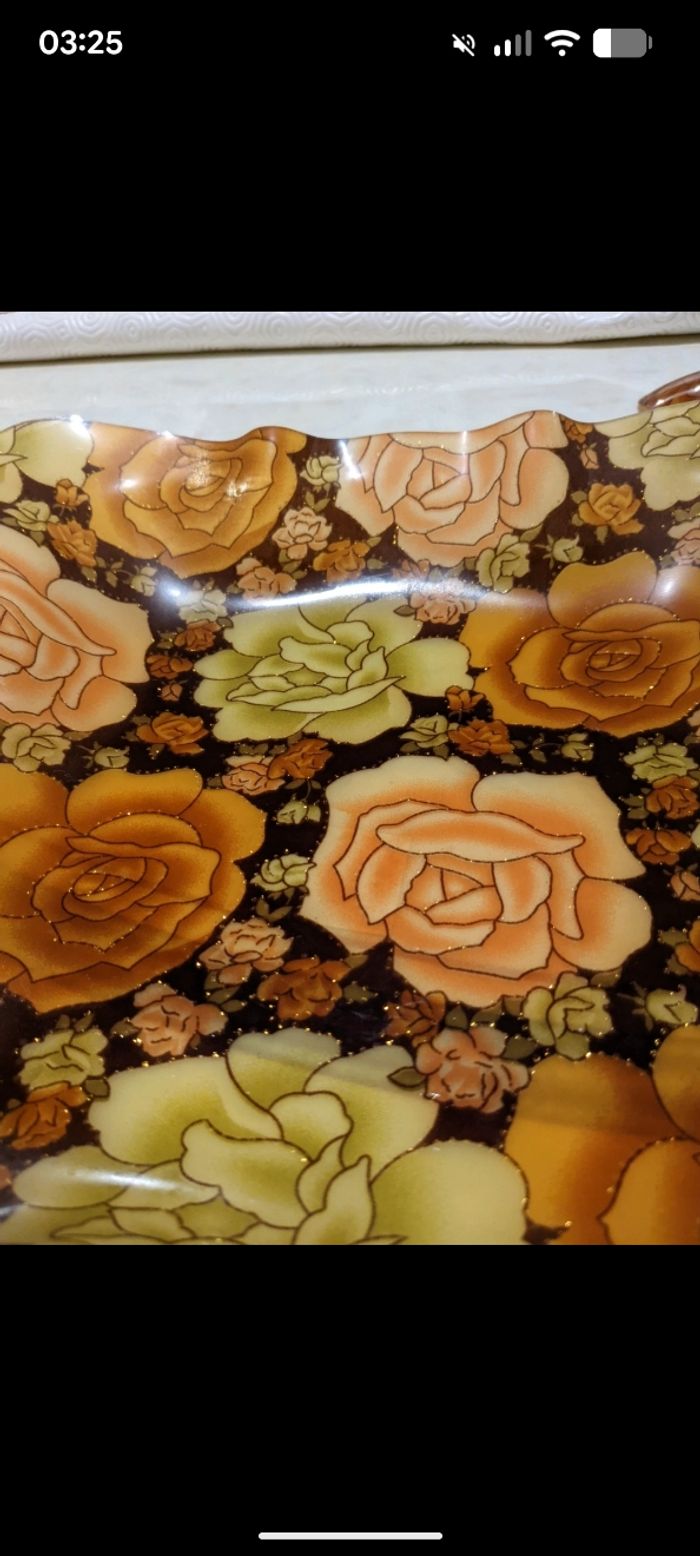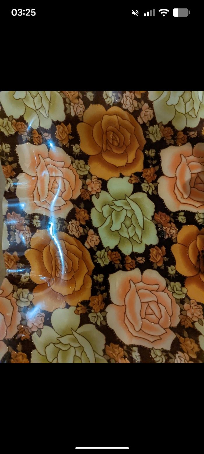 Magnifique plateau vintage imprimé fleuri et paillettes dorées. - photo numéro 10