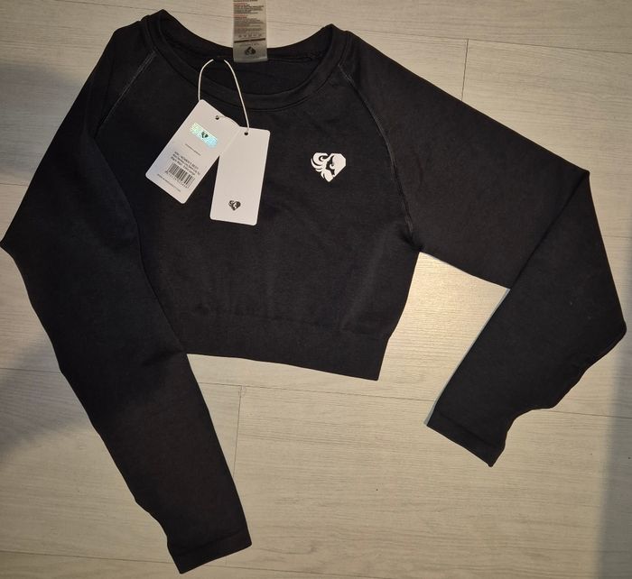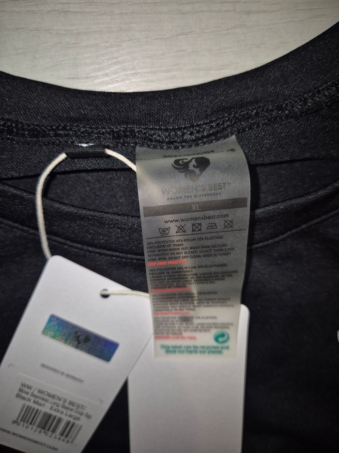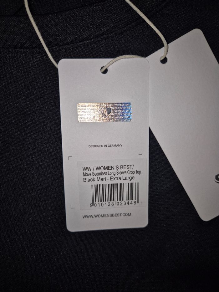 Haut de sport noir, manches longues de la marque #womenbest , jamais porté, état neuf. Taille XL Manches avec trous pour les pouces