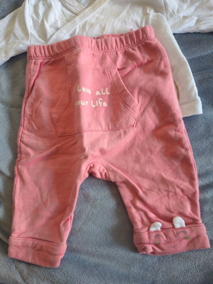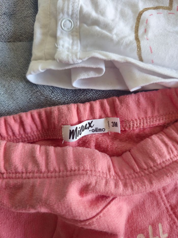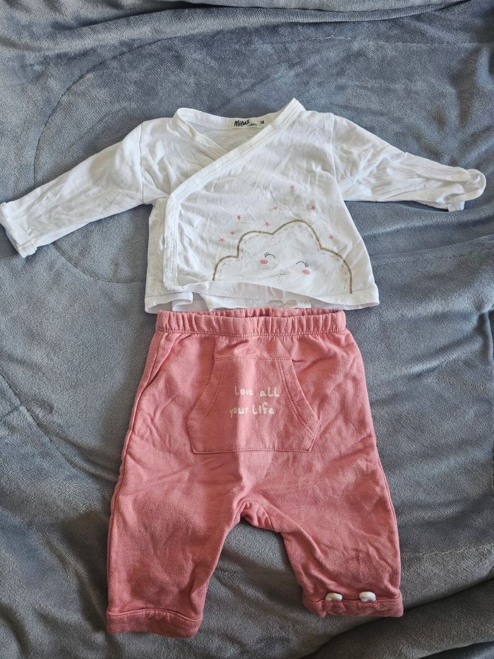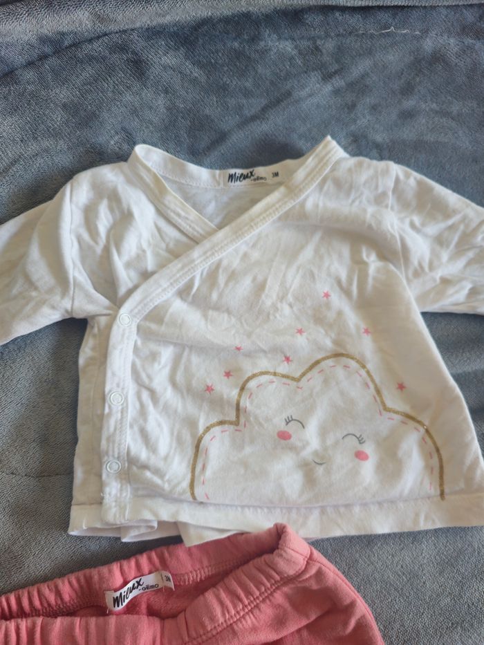 Jolie ensemble pour fille 3 mois En bon état rose et blanc Le haut une tâche regarde dernière photo Pantalon très bonne état