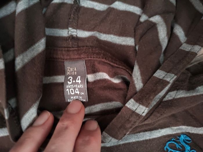 👉 Tee-shirt manches longues à capuche Zara rayures