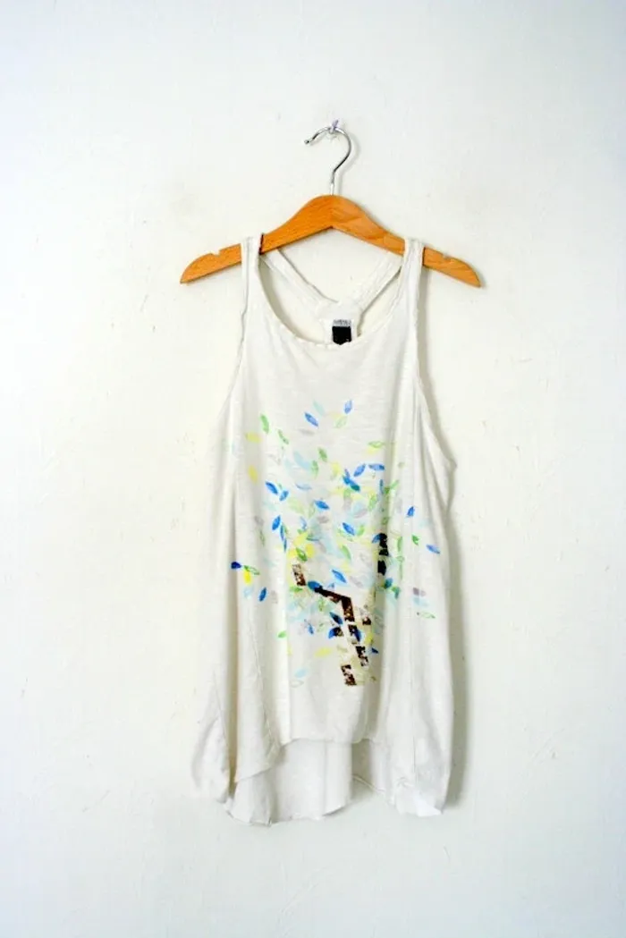 Débardeur Zara taille 9/10 ans, bien porté, plusieurs petites tâches + petit trou sur le côté cf photo, 70g