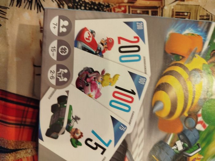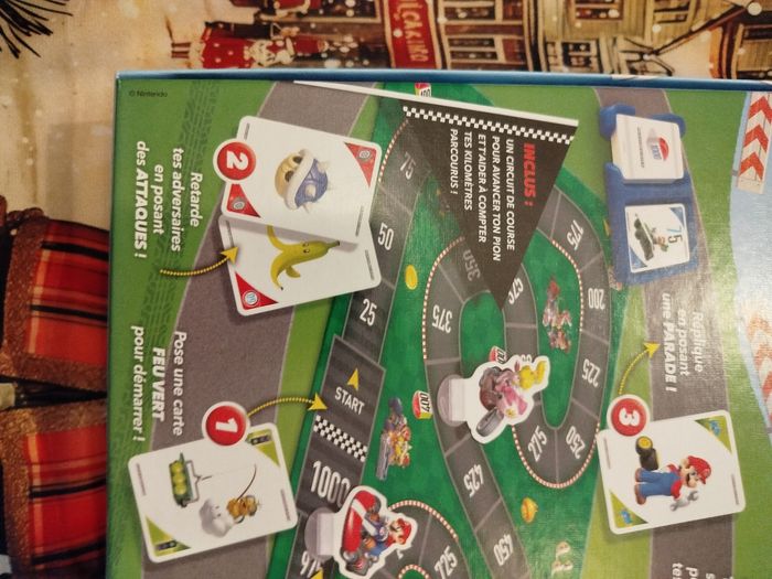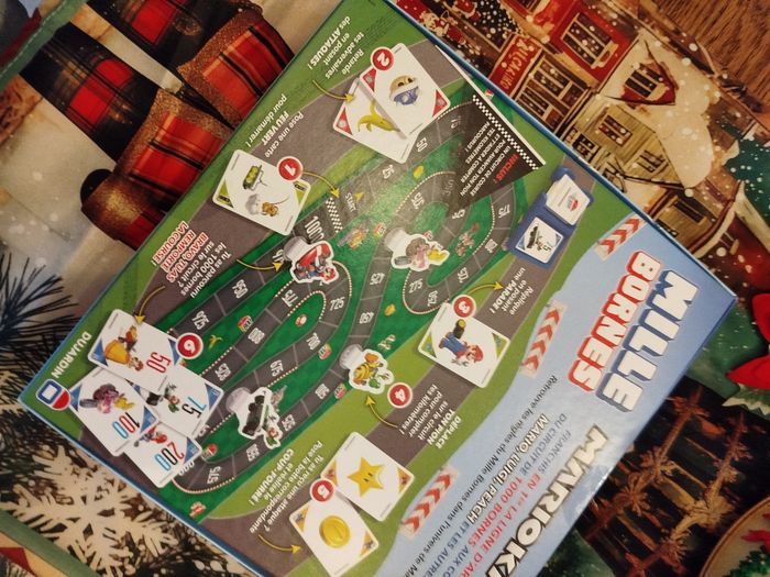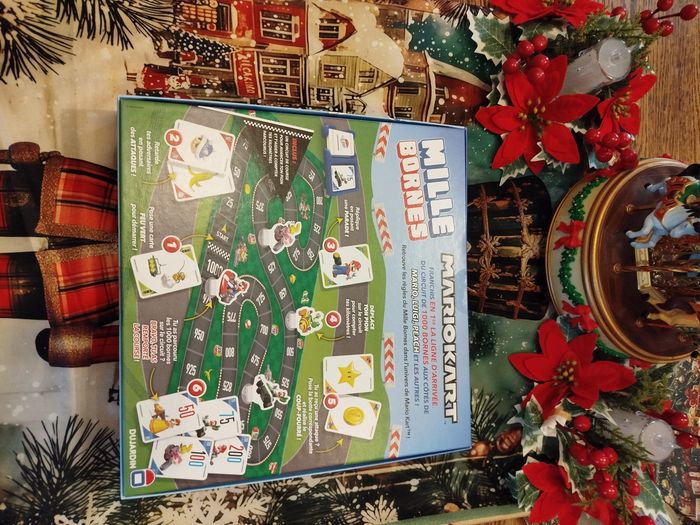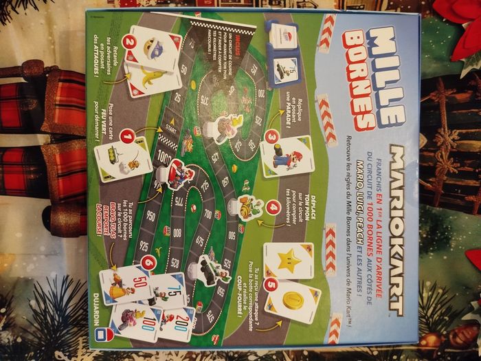 Le jeu reprend les règles classiques du Mille Bornes mais ajoute tout l’univers de Mario Kart : objets spéciaux, cartes bonus, et ambiance course déjantée. Parfait pour jouer en famille ou entre amis !