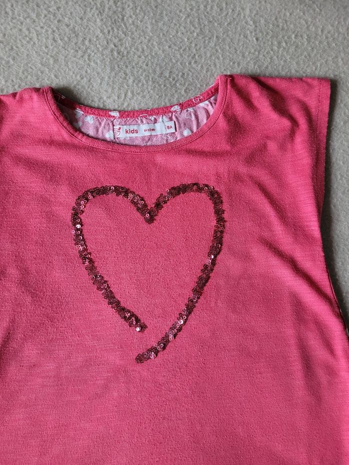 T-shirt gémo 8 ans En très bon état Rose fuchsia, coeur En sequins