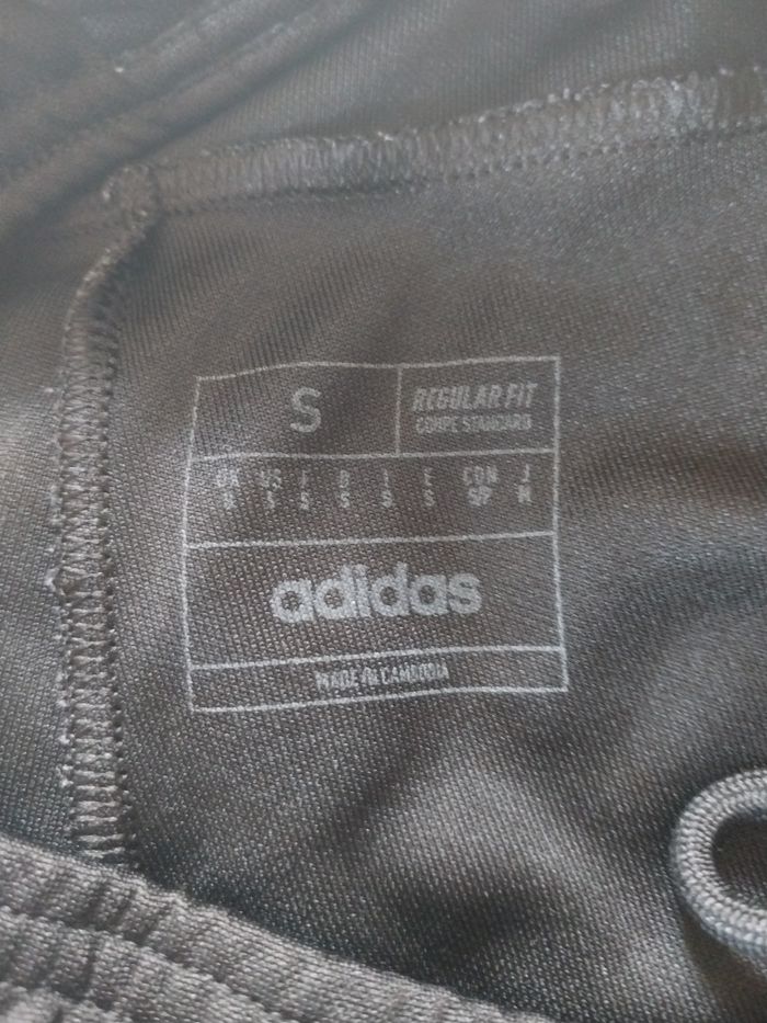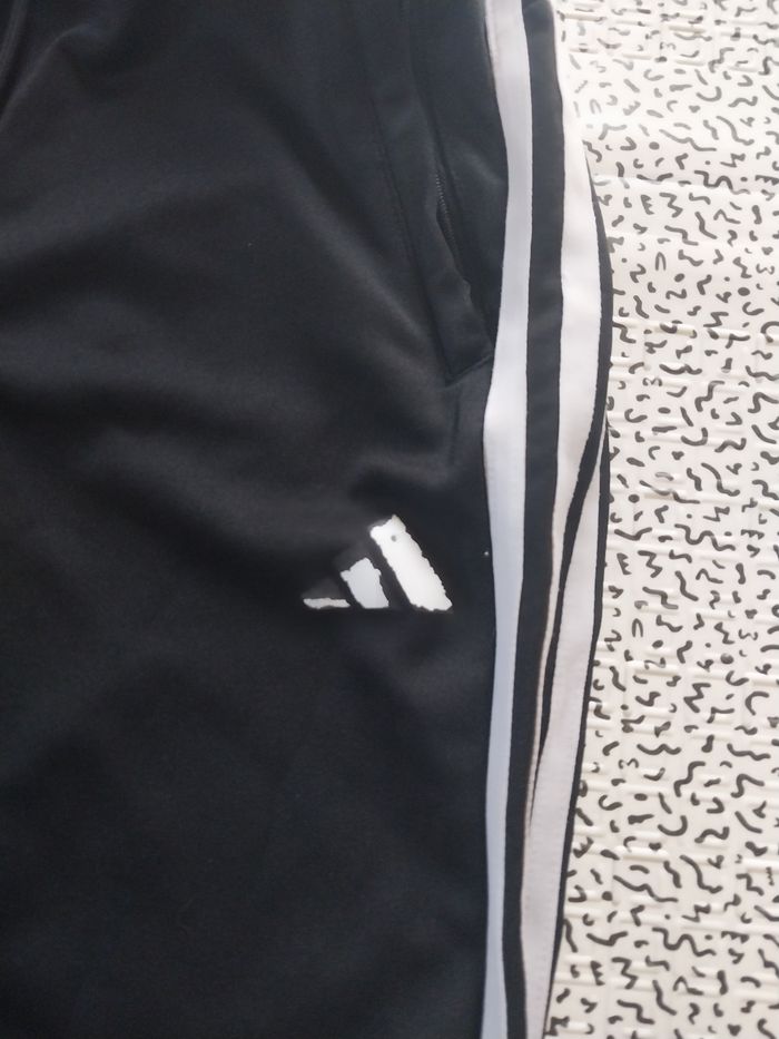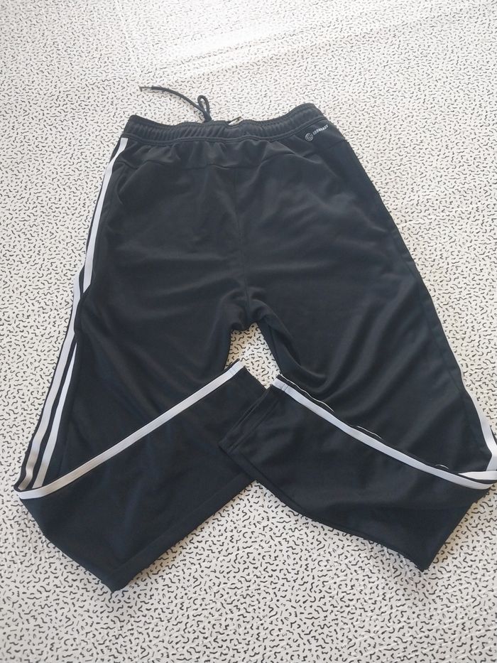 Vends pantalon de sport Adidas AEROREADY, taille S, en très bon état. Coupe regular fit, matière confortable et respirante, idéal pour le sport, le foot, la course ou la détente. ✔️ Confortable & léger ✔️ Technologie AEROREADY : évacue l’humidité ✔️ Taille élastique + cordon de serrage ✔️ Bandes latérales blanches ✔️ Poches zippées pratiques ✔️ Logo Adidas imprimé 🔸 Aucune tache, aucune déchirure. Logo un peu usé (voir photos). 🔸 Couleur : Noir / bandes blanches • Taille : S • Coupe : Regular fit • Longueur : classique, type jogging / training #adidas #aeroready #pantalonsport #jogginghomme #joggingadidas