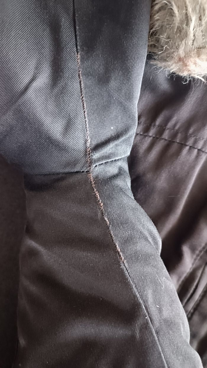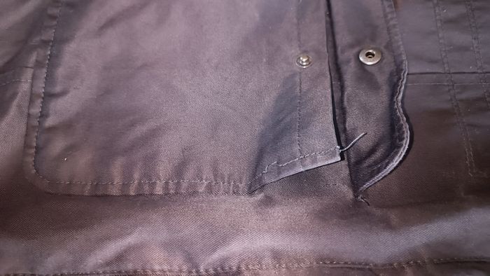 Défauts : raccommodé sous l'aisselle, Discret et une poche est à recoudre que le côté, je ne viens que de le voir. A recoudre par vos soins la poche. Sinon bon état, il ne va plus à ma fille.