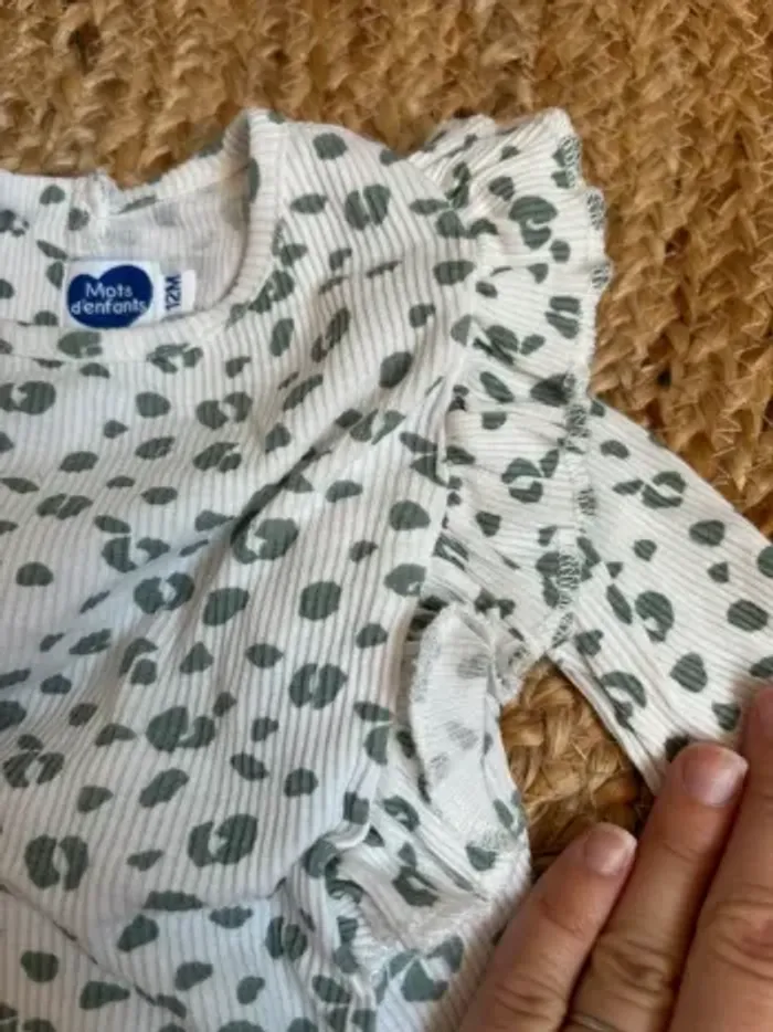 Lot ensemble tenue 3 pièces t-shirt léopard legging 12 mois mots d’enfants tbe
