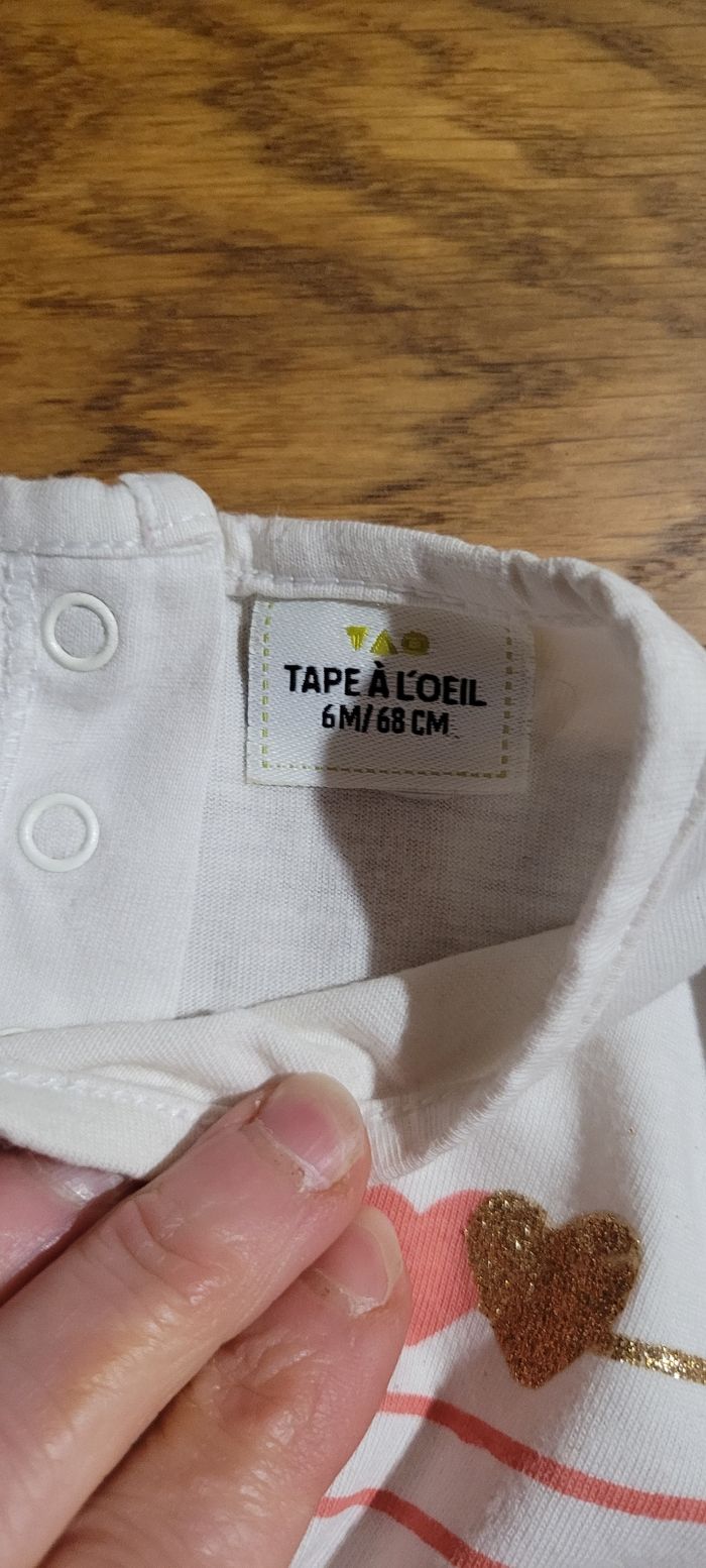 Maillot manches longues Blanc et rose 6 mois Tape à l'œil Très bon état