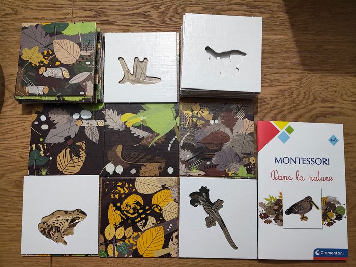 Un jeu pour comprendre comment les animaux se camouflent dans les sous-bois. Contient deux paquets de 24 cartes : dans le premier, les cartes sont illustrées de textures naturelles qui <> les animaux, tandis que le second contient des cartes blanches perforées avec les contours des animaux cachés. Le but du jeu est d'associer chaque contour avec la bonne texture pour découvrir quel animal s'y cache. En joignant les cartes illustrées, il est également possible d'assembler un grand puzzle. Dès 4 ans.