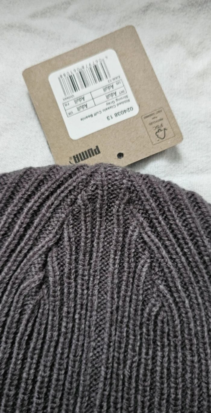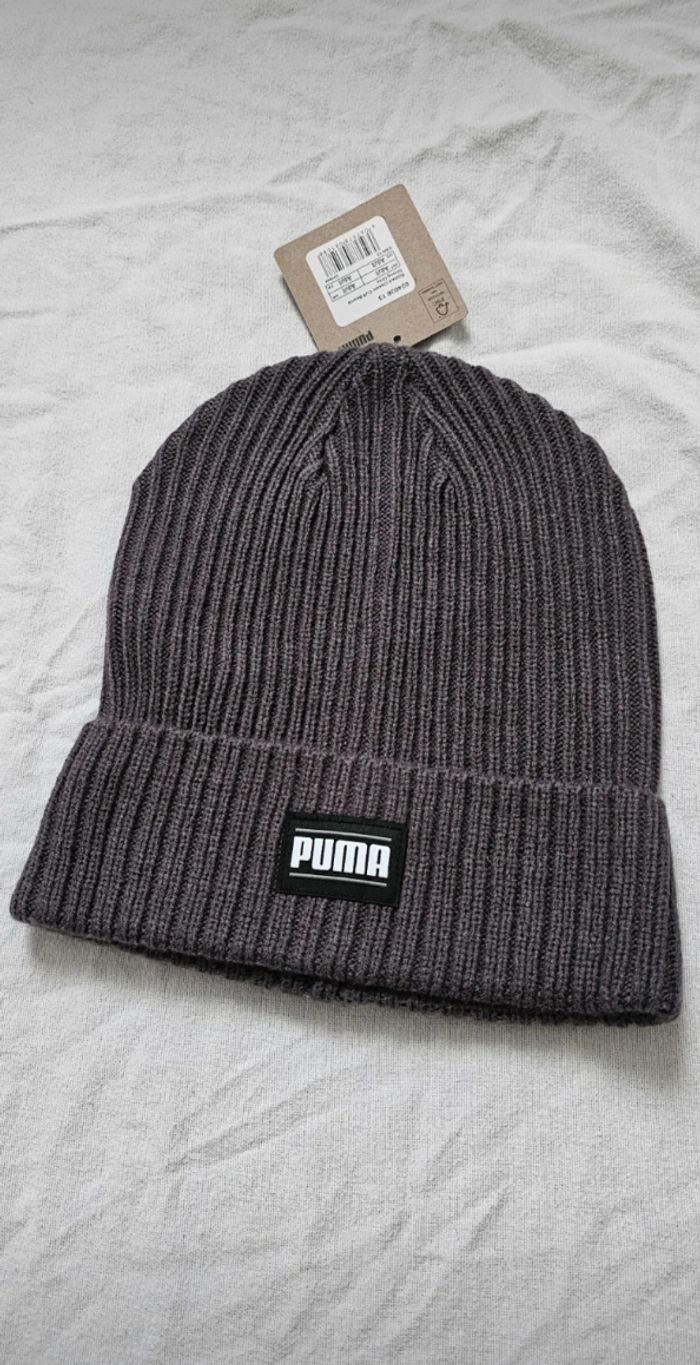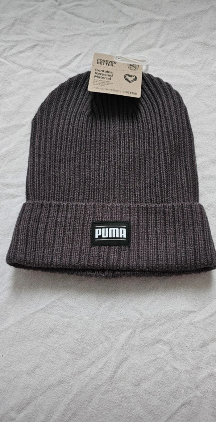 Bonnet en tricot gris de la marque PUMA, entièrement neuf avec étiquette.