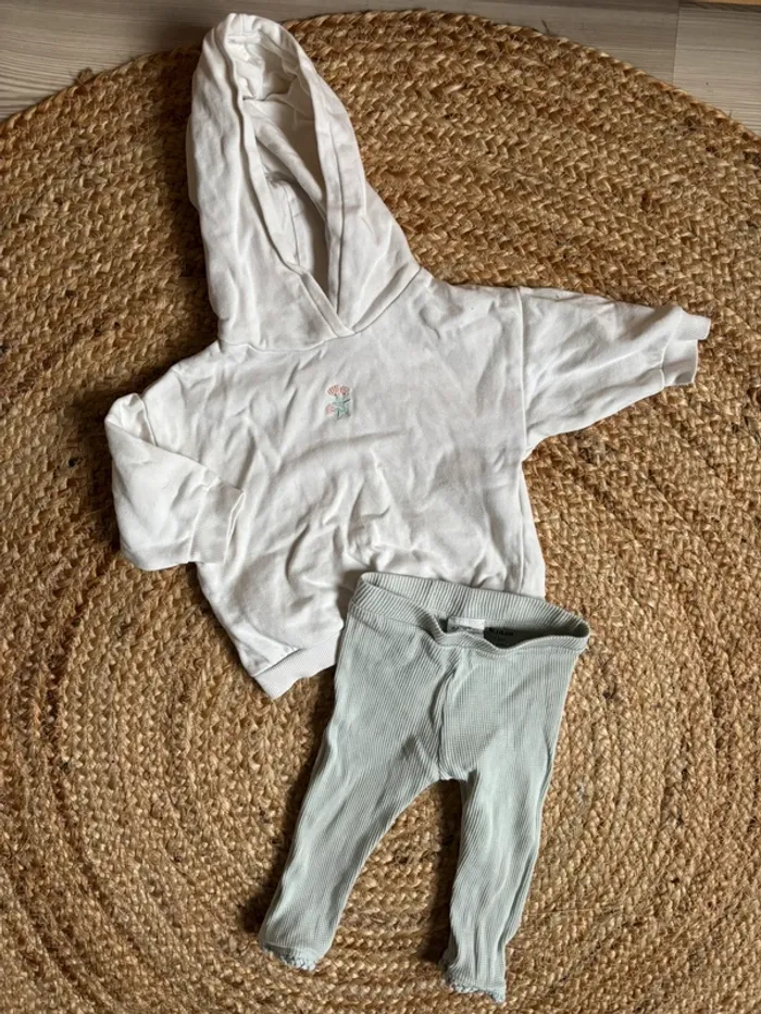 Sweat à capuche avec broderie + legging vert d’eau Le tout est en très bon état