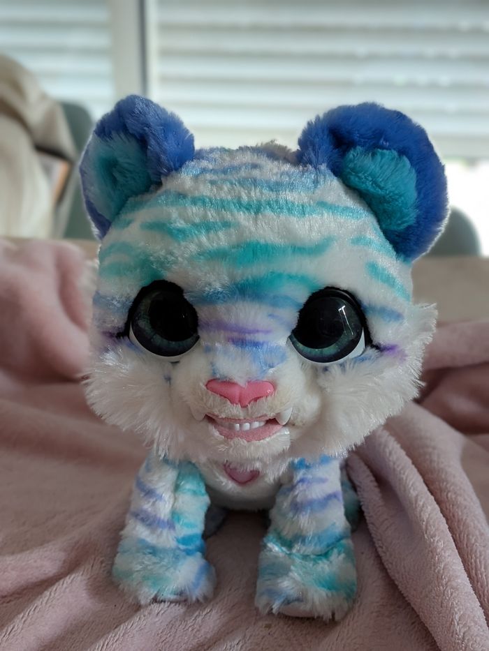 Jolie bébé tigre 🐅 North sera le compagnon idéal pour passer de bons moments uniques. Lorsqu'il grelotte et claque des dents parce qu'il a froid, dépêchez vous de le réchauffer en lui donnant plein d'amour et des bons soins ! Avec plus de 35 sons et mouvements, le félin agira de différentes manières. Quand vous le réconforterez avec des câlins ou des caresses, ses petits grognements se transforme en adorable ronronnement et son cœur se met à briller de bonheur ! Amusez-vous à découvrir toutes les aptitudes de cet adorable animal interactif, partagez des moments de complicité et devenez vite inséparables !