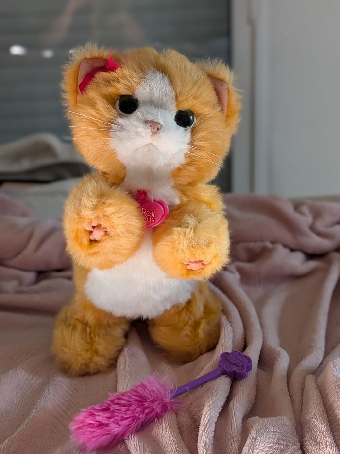Adorable chat 🐱 Descriptif Adoptez cette adorable Peluche interactive Furreal Friends Daisy mon chat joueur. Ce petit chat s'élance pour attraper son jouet et se lève sur ses deux pattes arrières pour jouer ! Cette peluche interactive possède des capteurs sur ses pattes, sa tête et son dos, ce qui lui permet de réagir lorsqu'on appuie sur sa patte, qu'on lui présente son jouet ou qu'on le caresse sur le dos. En plus de ces différents mouvements, ce petit chat émet divers sons comme des ronronnements pour accroître son réalisme.
