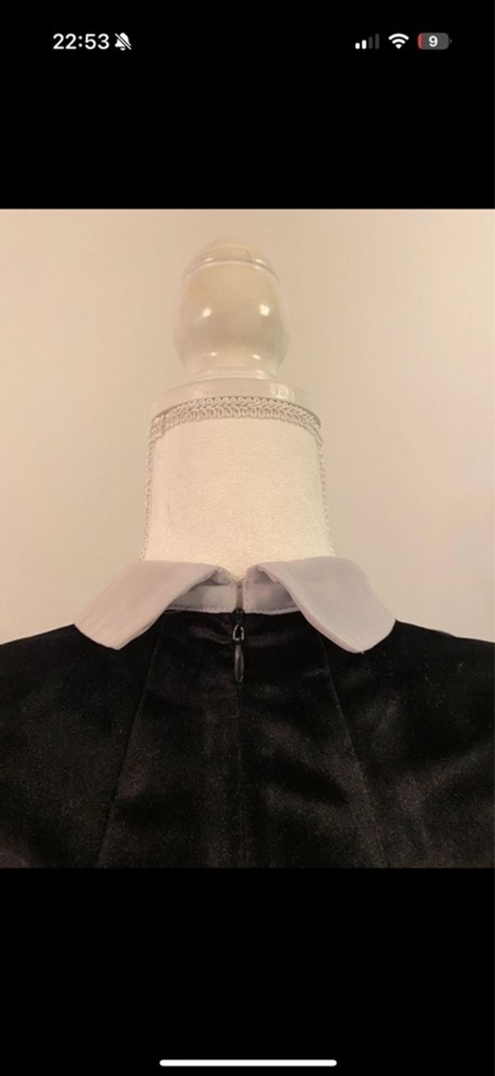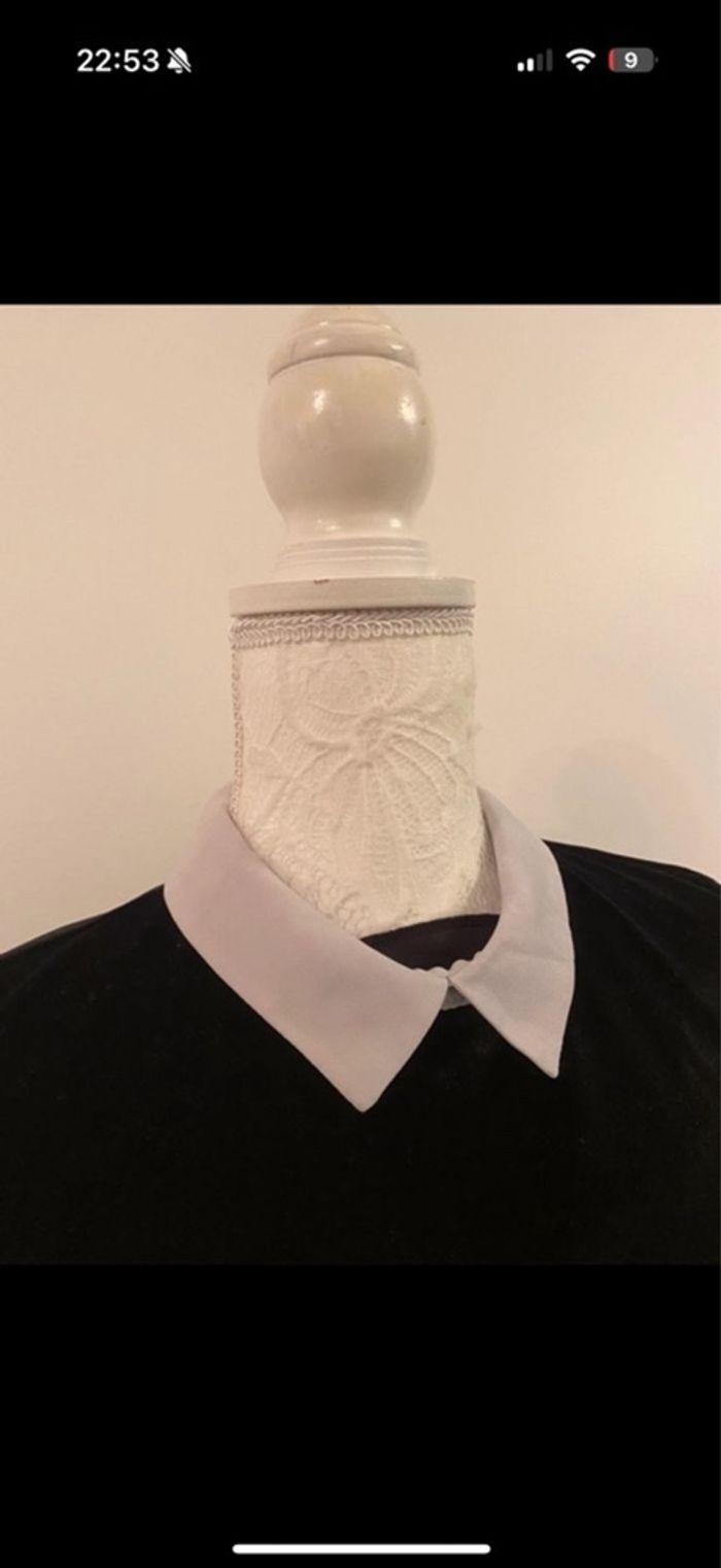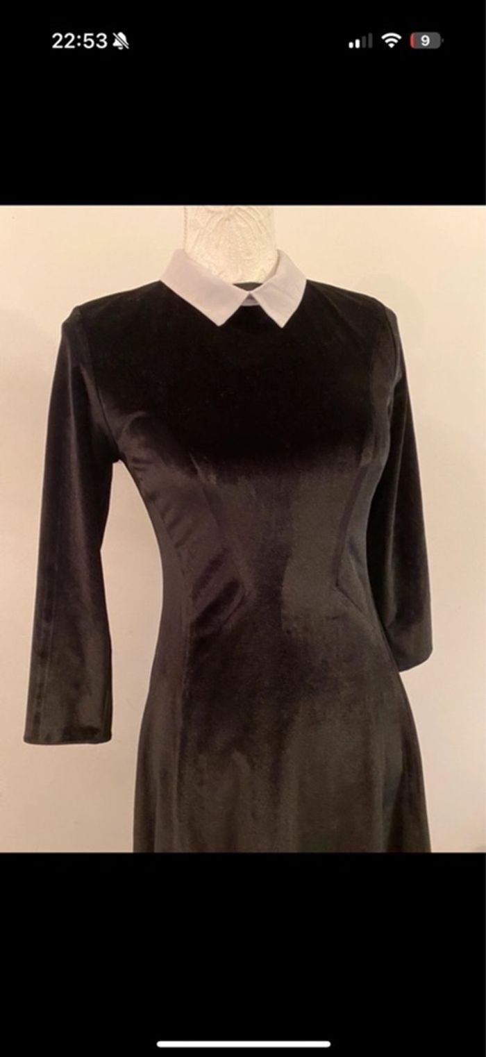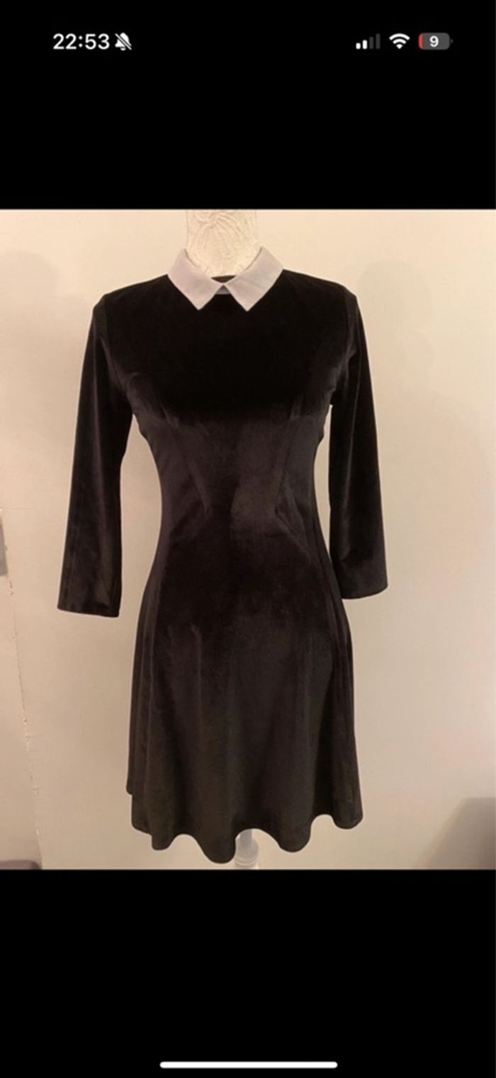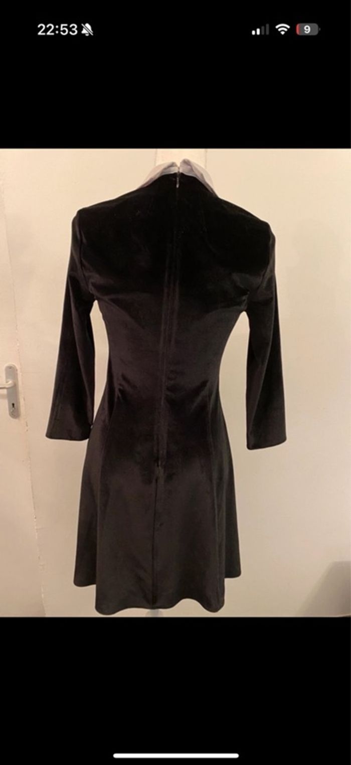 👗Robe patineuse, parfaite pour une tenue chic ou décontractée 💃 🏷️ Marque : Pimkie 📏 Taille : M ( convient aussi à un S) ⚫ Couleur : Noir avec col blanc 🧵 Matière : 93% polyester 👗Robe entièrement effet matière velours 🧼Remarque : le col n’est plus tout blanc, il a déteint