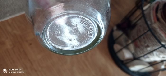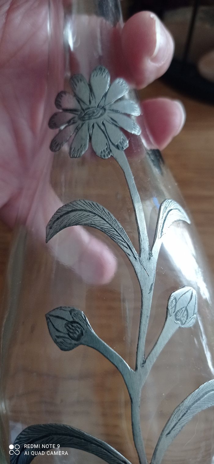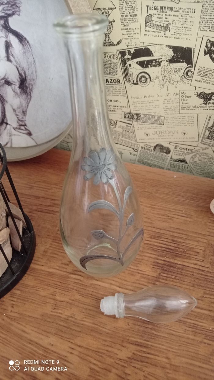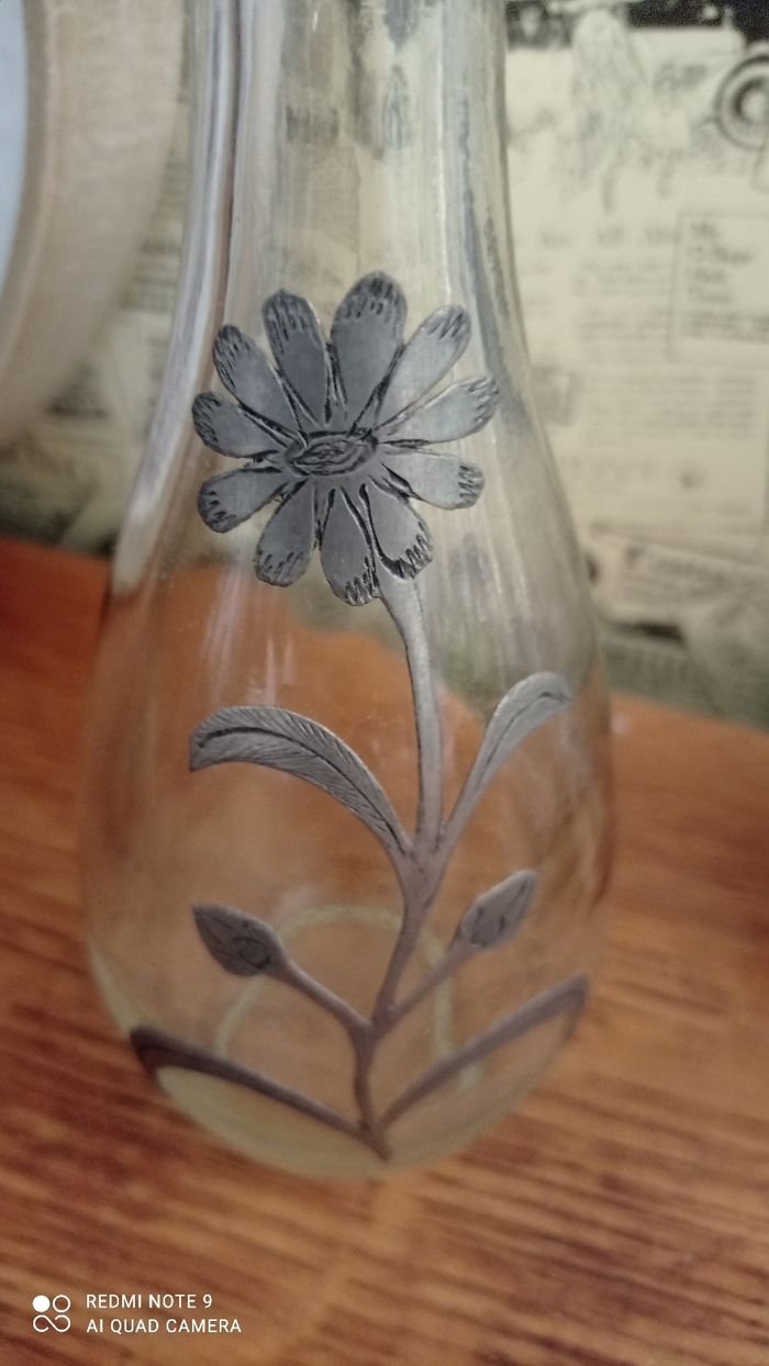 Carafe ancienne en verre et fleur en étain, modèle déposé