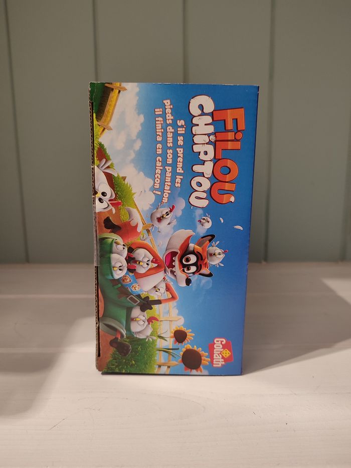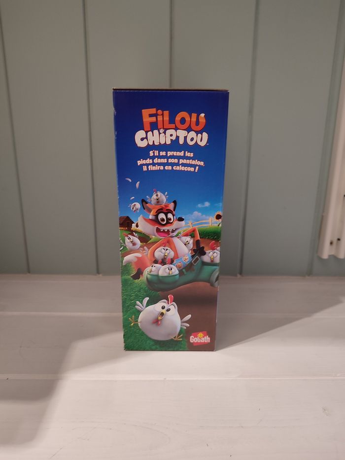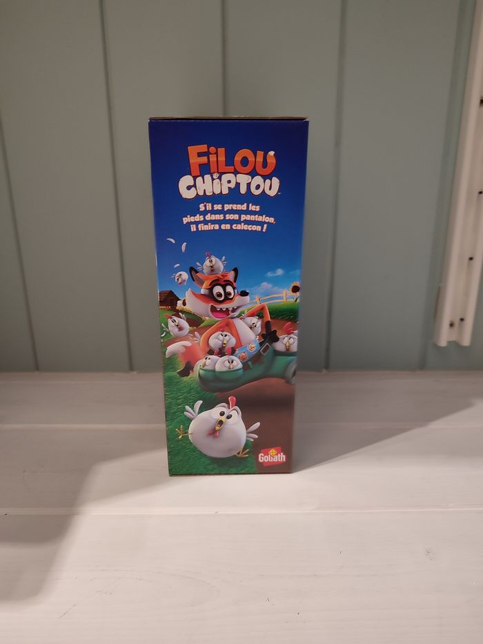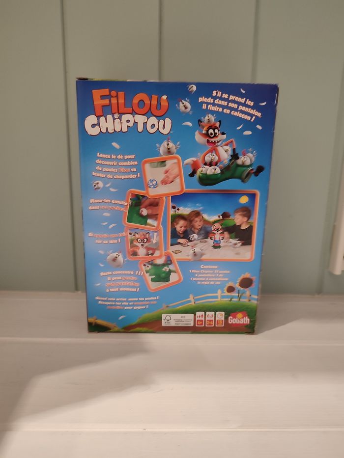 Dans Filou Chiptou de Goliath, le renard a une facheuse tendance à perdre son pantalon, laissant le temps aux poules de pouvoir s'échapper ! Lancez le dé pour découvrir combien de poules Filou va tenter de chaparder ! Placez ensuite les poules dans ses poches et appuyez une fois sur sa tête. Restez concentrés, il peut perdre son pantalon à tout moment. Et, quand cela arrive, sauvez vos poules ! Récupérez-les vite et complétez votre poulailler pour gagner.