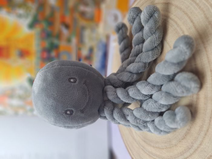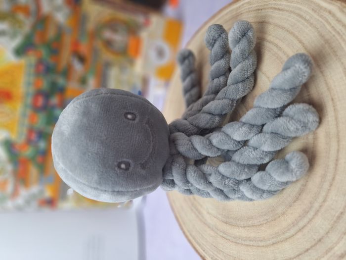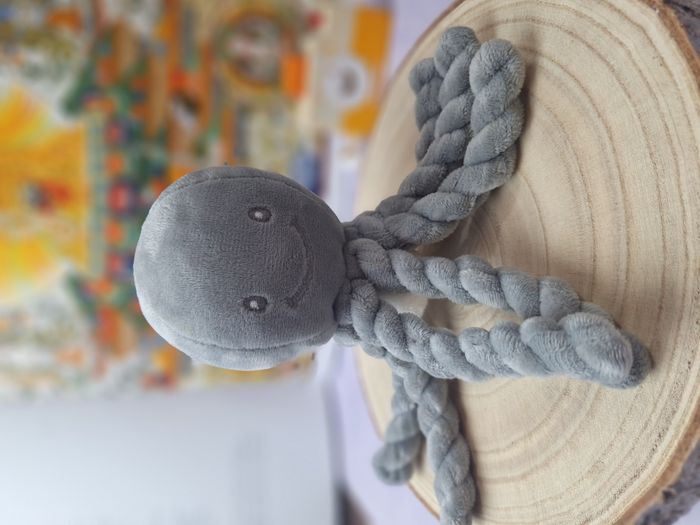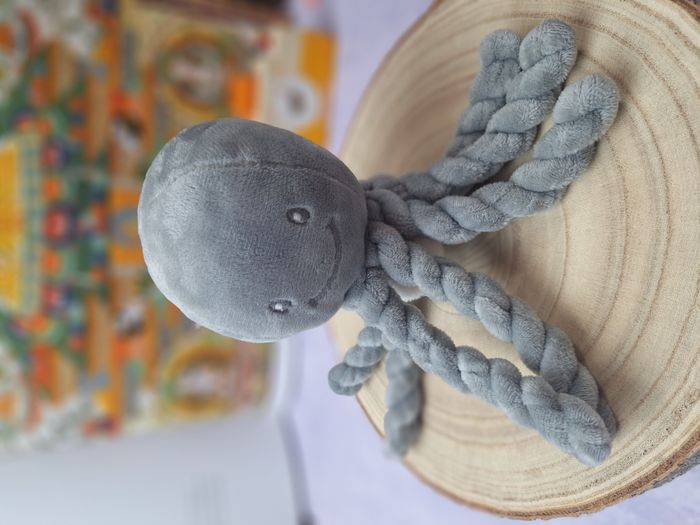 Je vends cette adorable peluche octopus musicale de la marque Nattou, de couleur gris argent. - Type de produit : Peluche - Marque : Nattou - Couleur : Gris argent - Fonctionnalités : Musicale Très bon état. N'hésitez pas à me contacter pour plus d'informations sur cette peluche adorable et musicale !