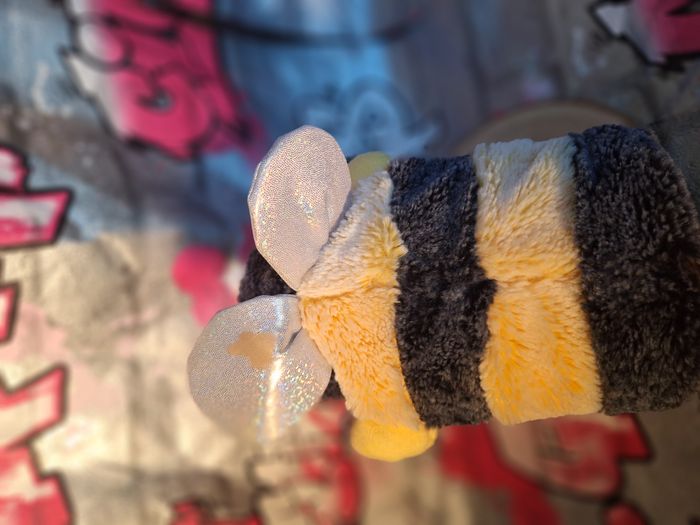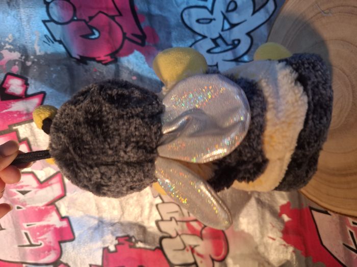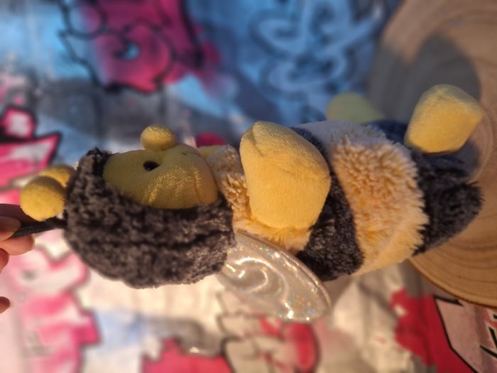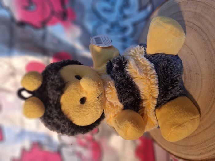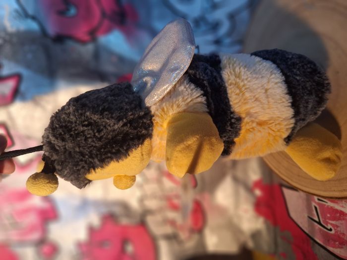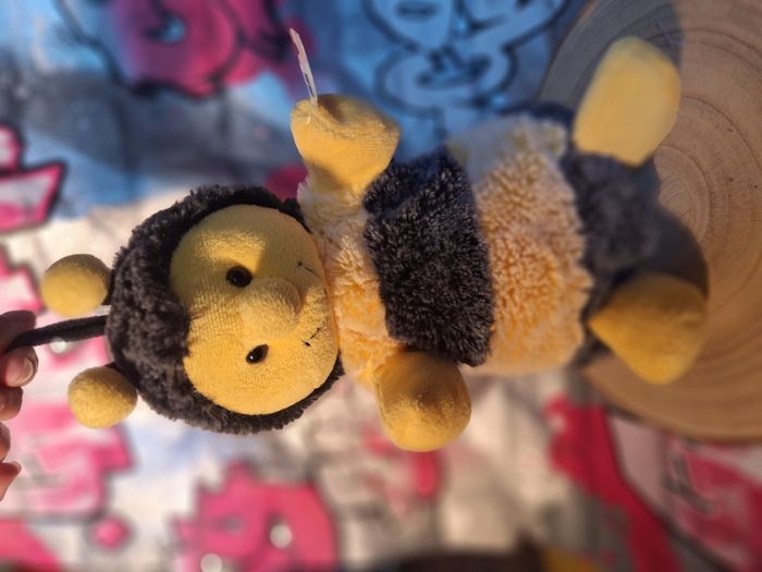 Peluche Rodadou abeille Marionnette à main jamais utilisée L'étiquette est un peu abimée du au stockage légère décoloration d'un dessous d'aile voir dernière photo